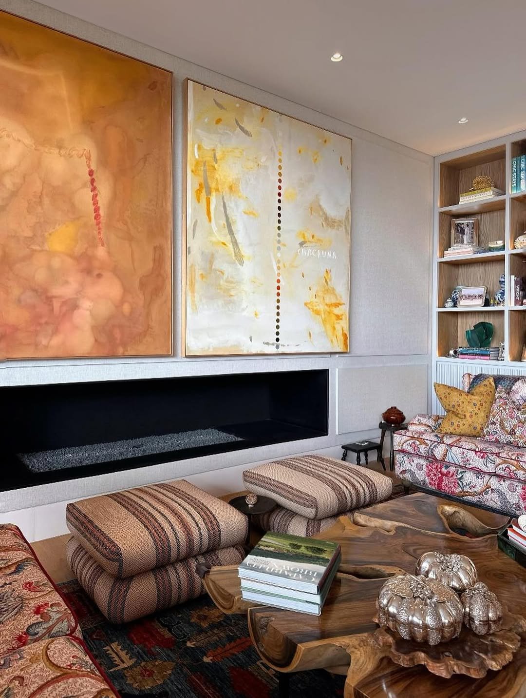 And then you’ve got the layered coffee tables and books adding that lived-in charm. It’s giving “effortlessly cool,” like someone who just happens to have great taste.