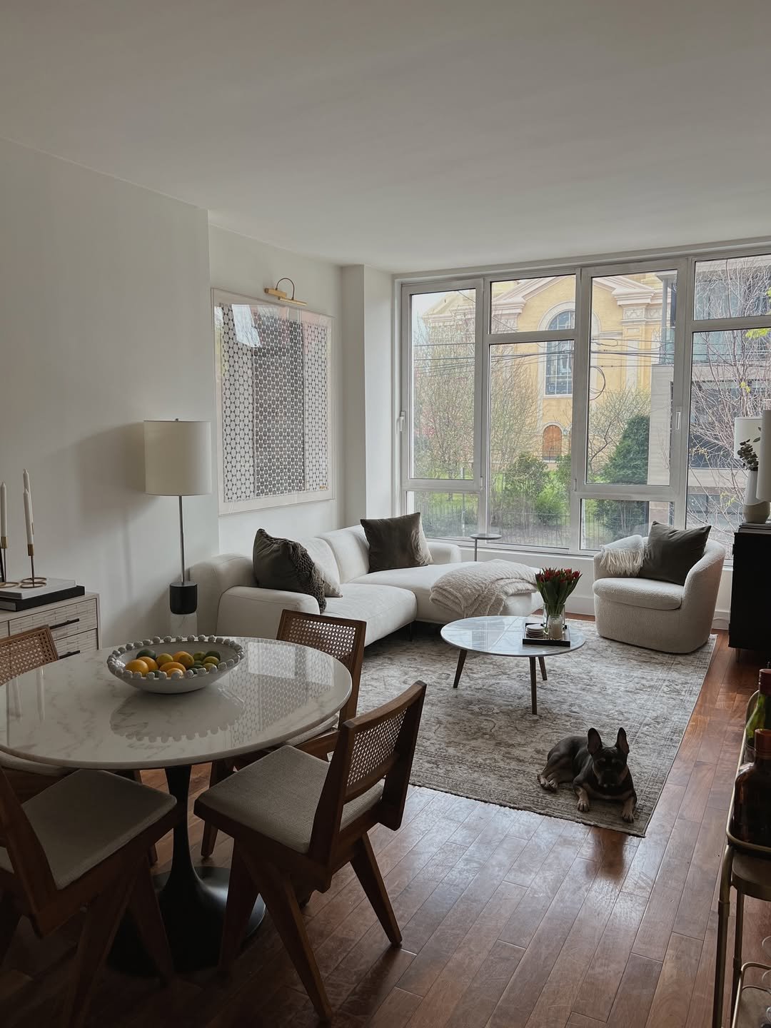 This space leans minimal, but it still feels warm. The neutral sofa, soft rug, and natural light create that effortless “put together but not trying” vibe.