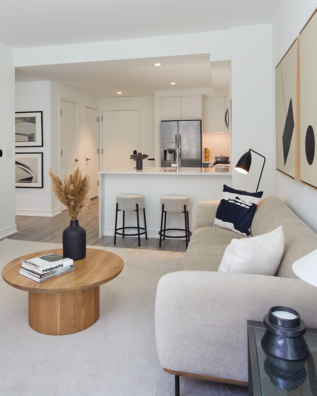 Open-plan living can be tricky, but this one nails it. The layout flows from living to kitchen without feeling cramped, and every piece pulls its weight.