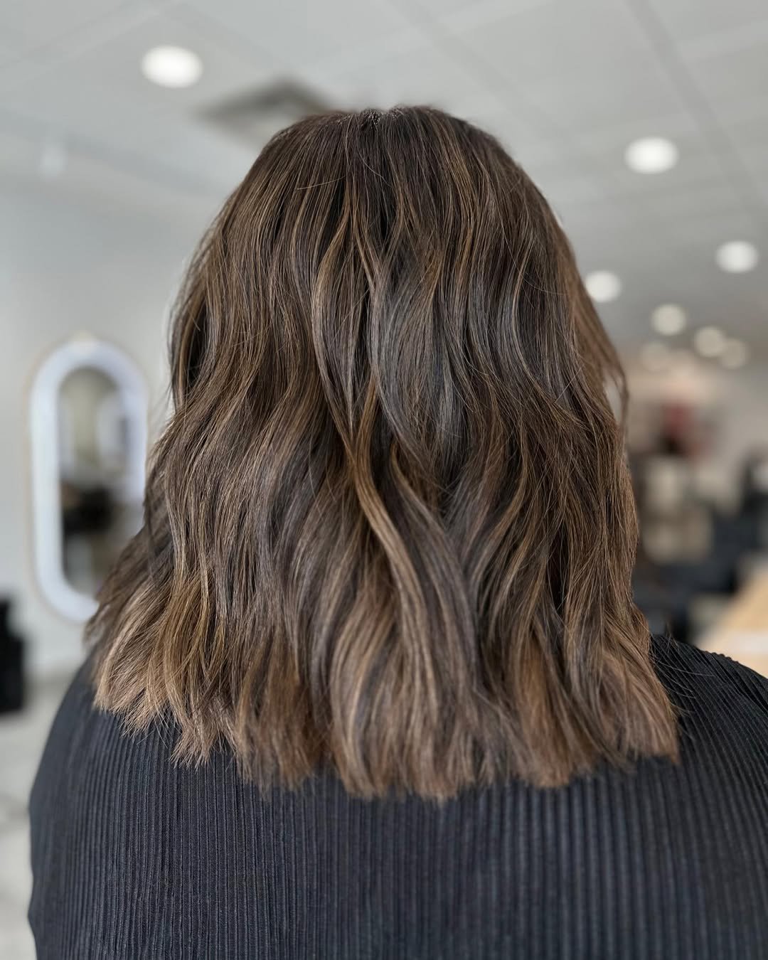 Finally, @zoeyh_hair gives us this dimensional ash espresso lob that’s equal parts effortless and chic. The cool brown base is laced with barely-there highlights, giving just enough contrast to add texture without looking busy.