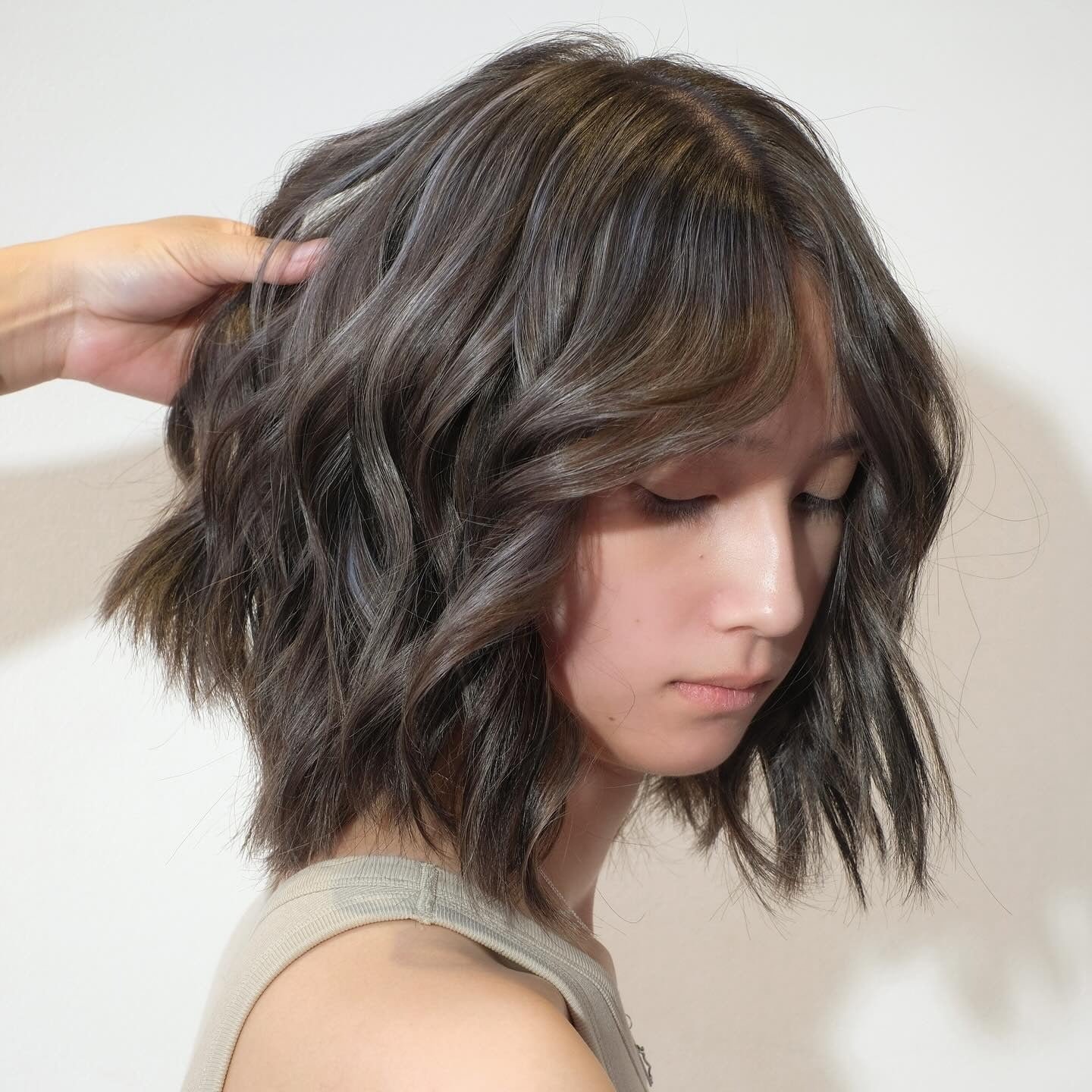 It’s polished yet playful, especially paired with soft curtain bangs and loose curls that frame the face. If you want a cut that feels fashion-forward but wearable, this is your inspo shot.