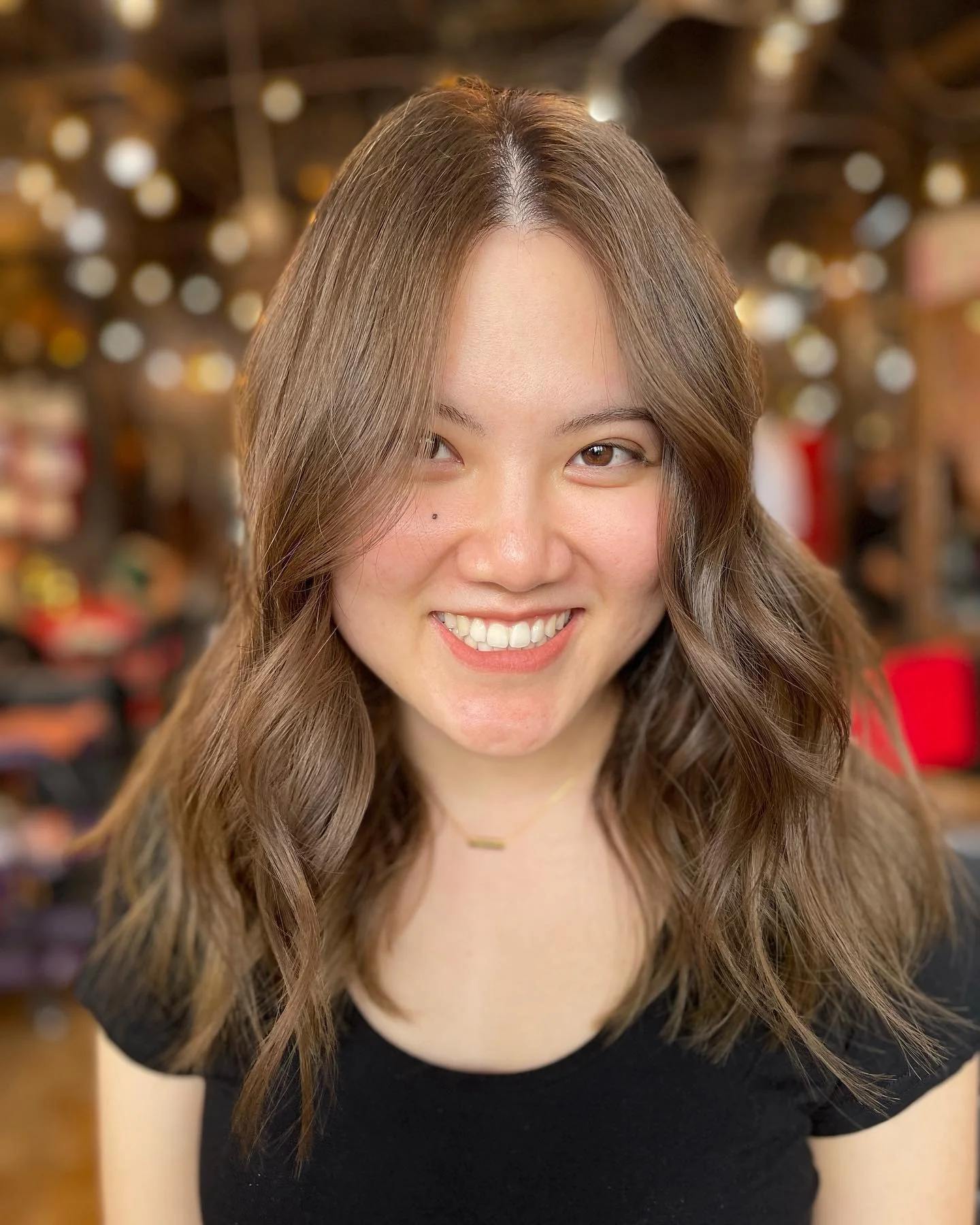 If you’re craving a soft update from classic brown, this one adds just enough coolness to modernize your look without losing warmth. It’s equal parts polished and approachable — the kind of hair that looks amazing with an oversized blazer or a weekend sweater.