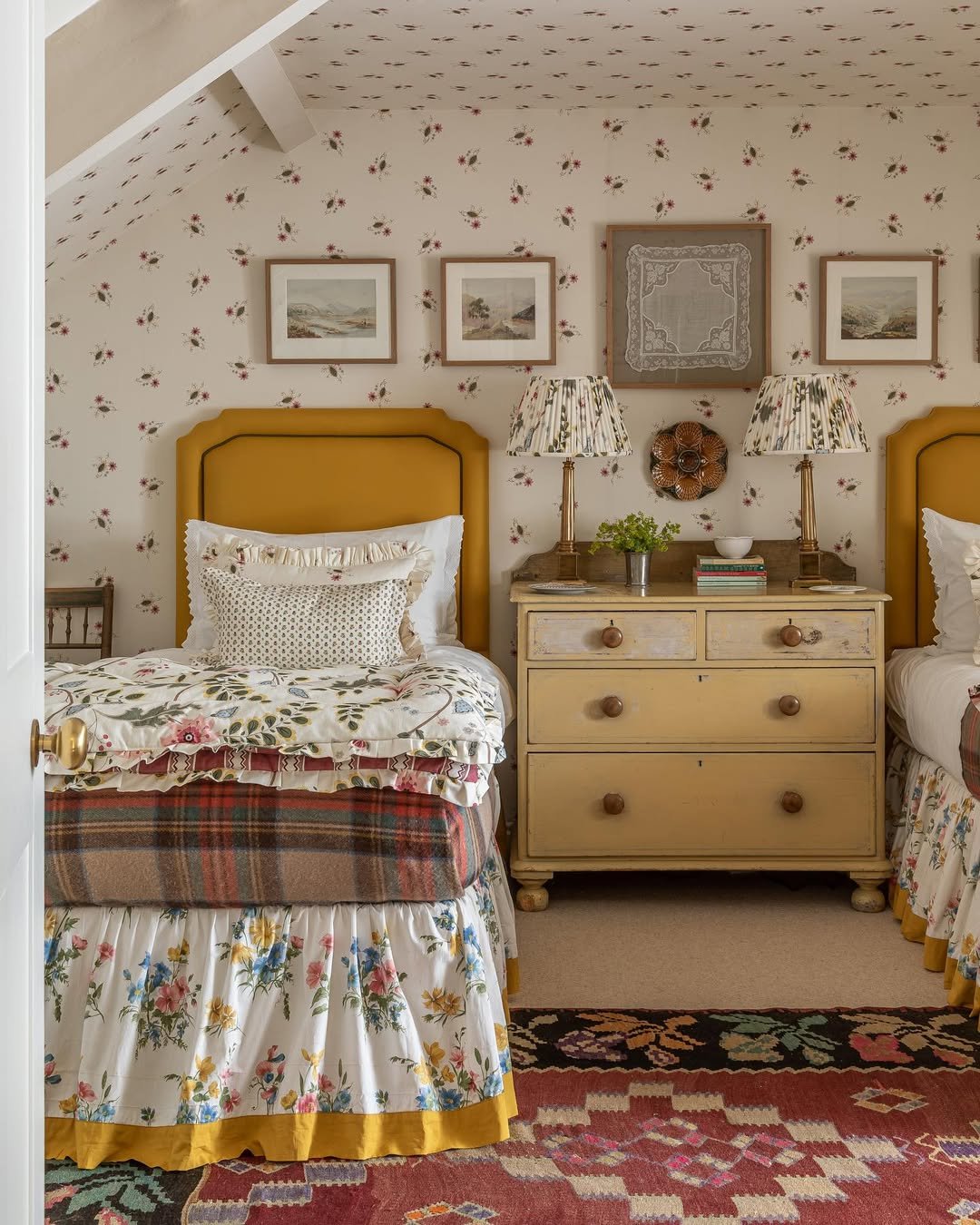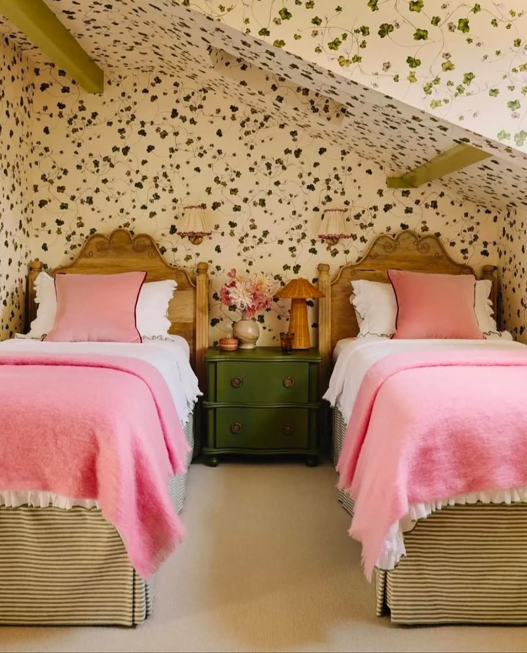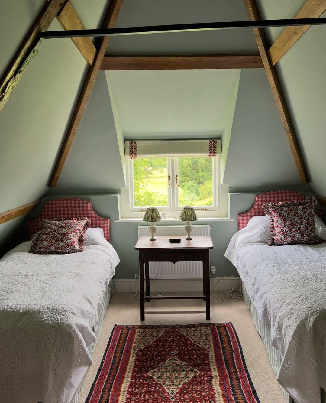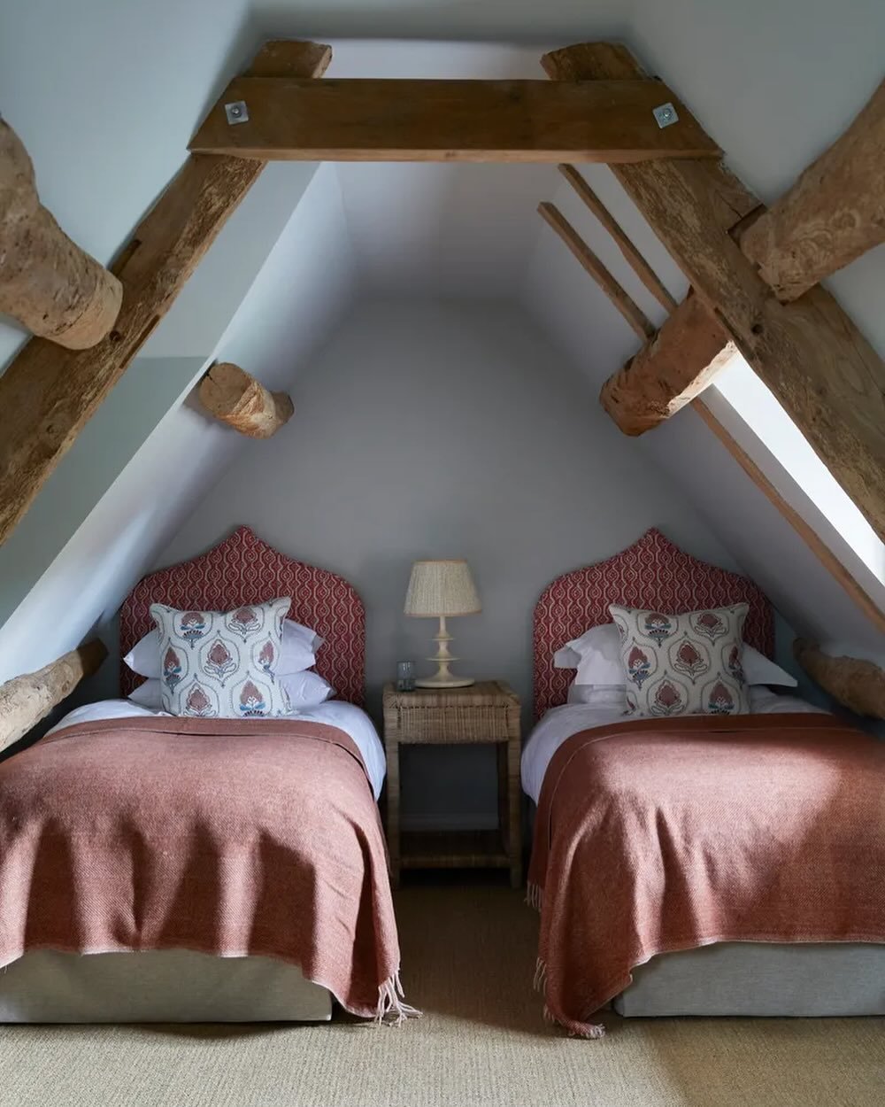 This one feels like it belongs in a charming English cottage. The matching beds, tucked beneath the sloped ceiling, create a perfect little moment of symmetry that feels both cozy and intentional.