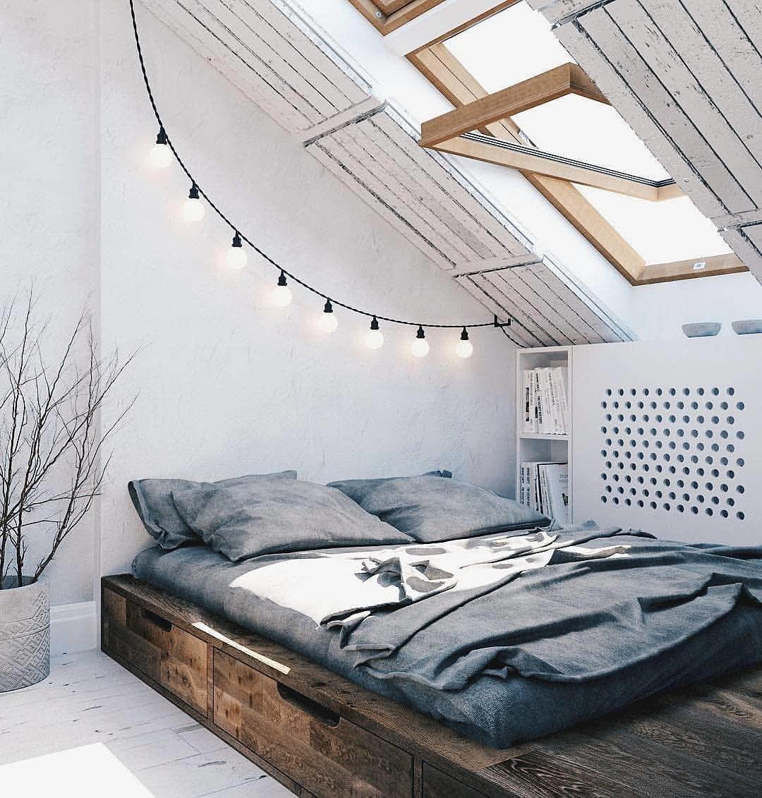 This one proves you don’t need much to make an attic feel special. A low bed, a few clean lines, and that skylight bringing in soft light from above.