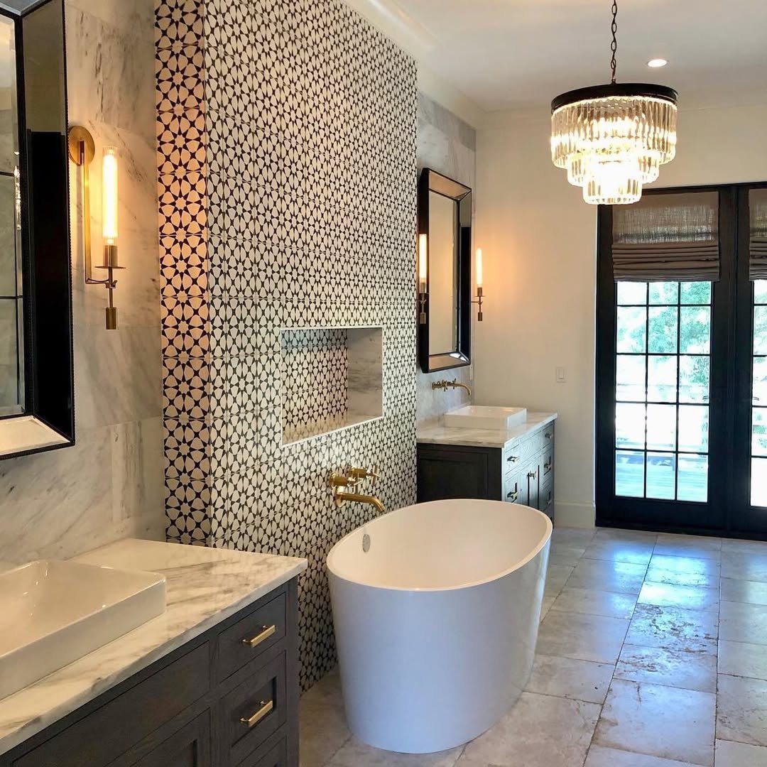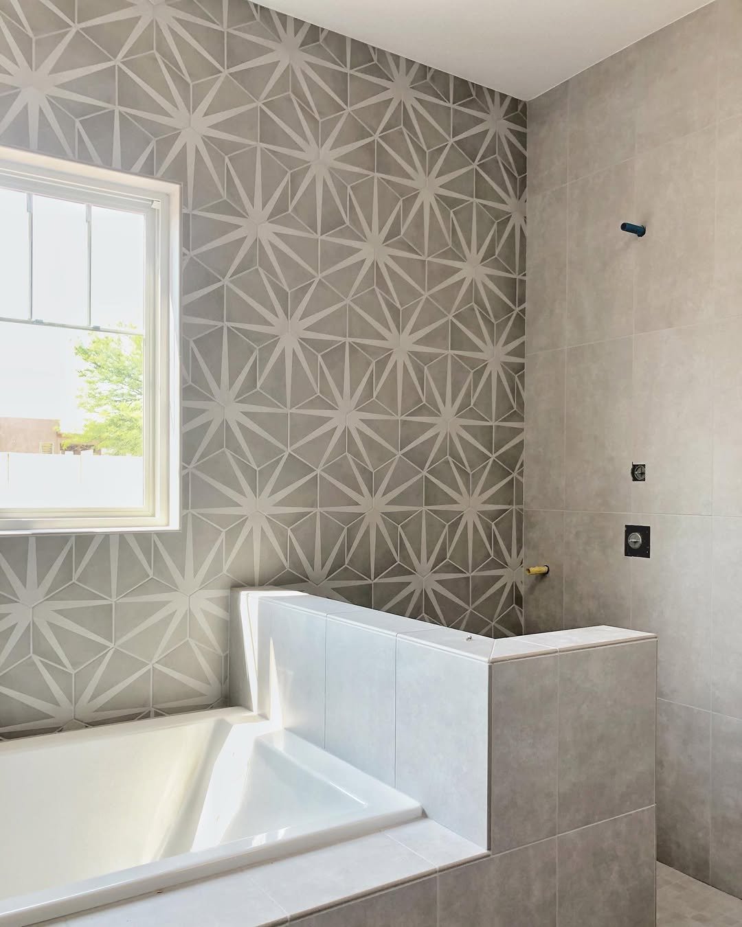 There’s something timeless about a detailed cement tile wall like this. The intricate pattern adds richness without needing bold colors.