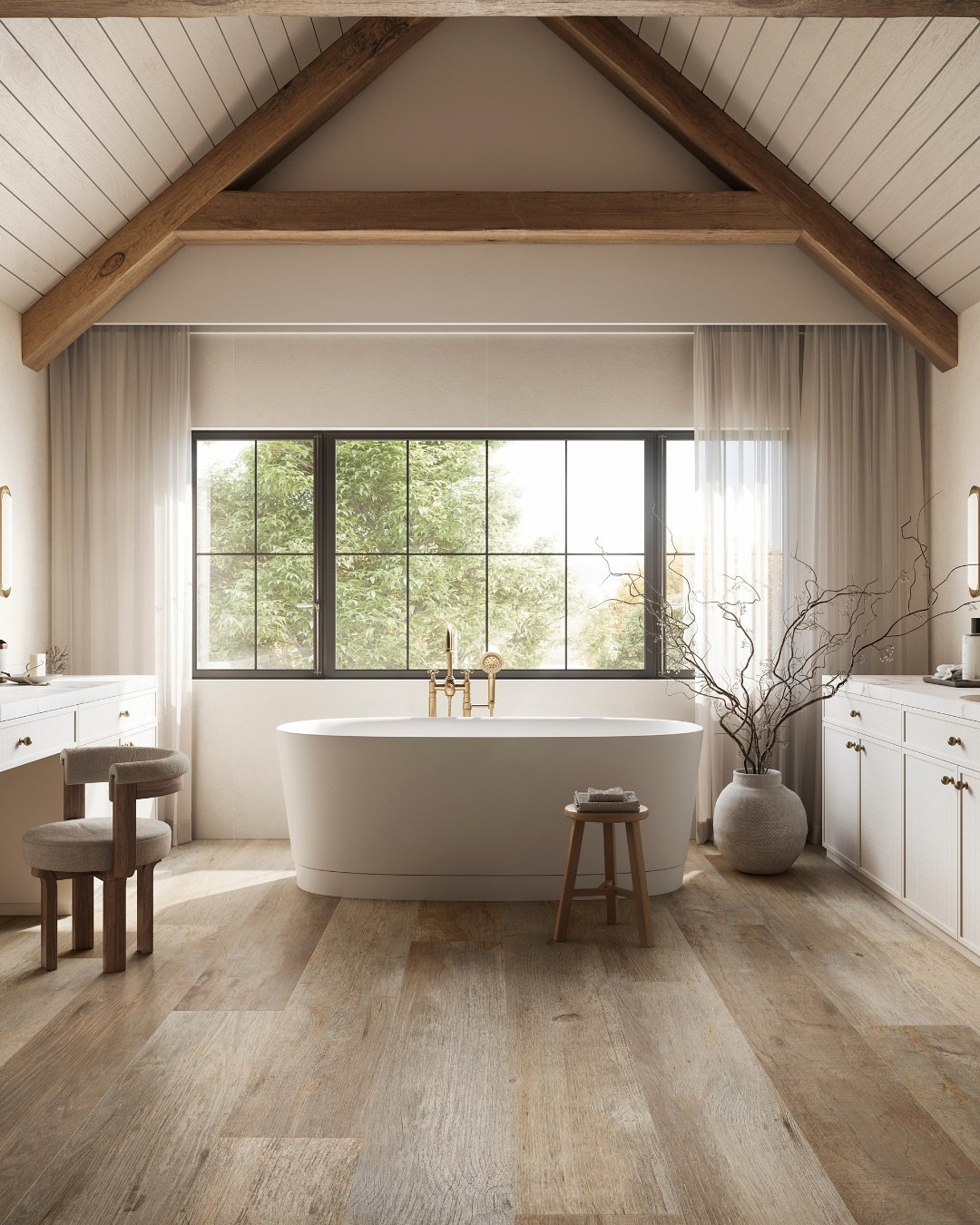 This floor brings in that soft, earthy warmth that instantly makes a bathroom feel more inviting. The wood-look tiles are practical (hello, water resistance) but still give that cozy, natural aesthetic.