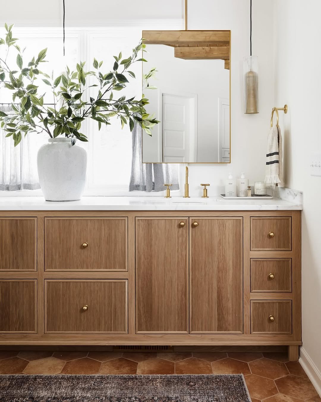 Okay, this one is all about texture. Those vertical tiles behind the sink add depth in such a subtle way, but you can’t stop looking at them.