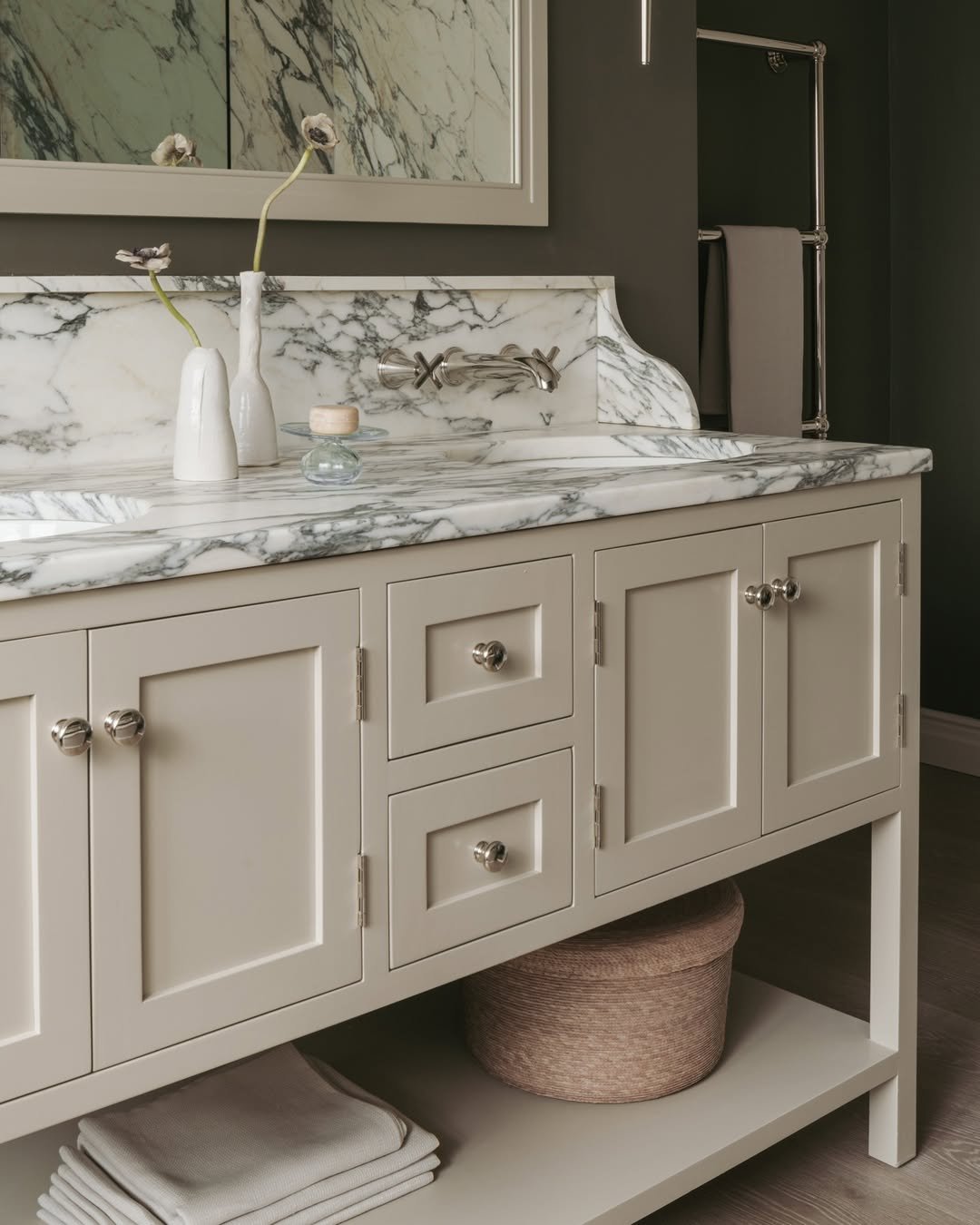 The soft cabinetry underneath keeps it grounded, so the whole thing feels elegant, not overwhelming.