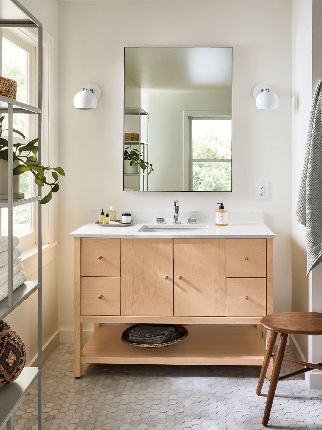 Clean, simple, and super functional. The vanity doesn’t try to compete with the rest of the space—it just supports it.