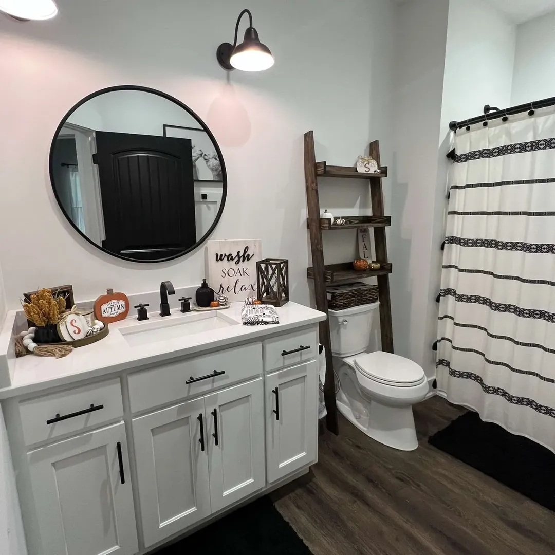 Towels, decor, even a small plant—it all fits without making the space feel cramped. It’s practical, but still has that “Pinterest-worthy” finish.