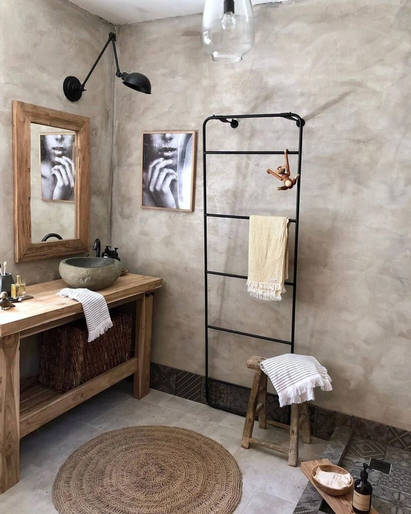 It brings texture into the bathroom in a way that feels grounded. Like a reminder that not everything needs to be polished to look good.