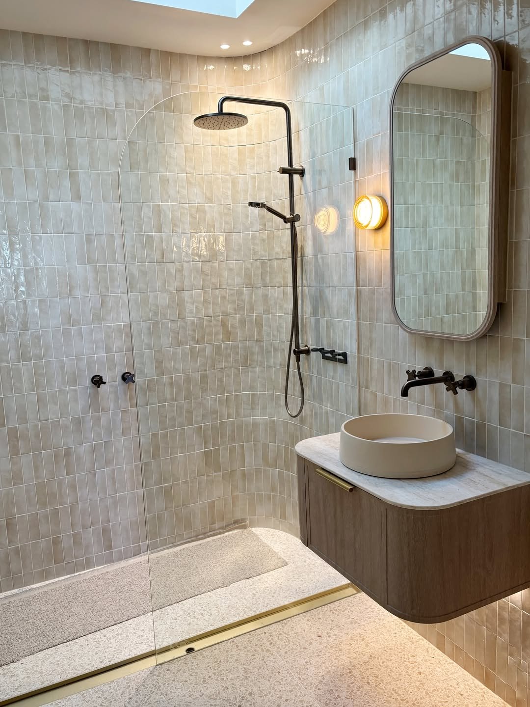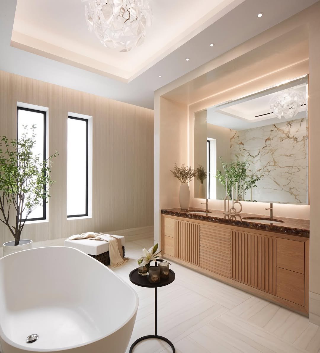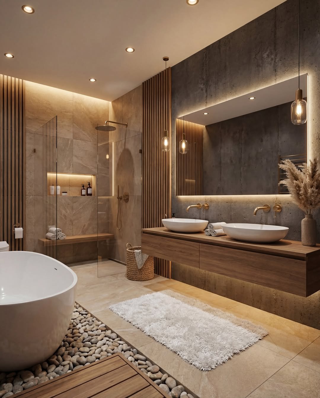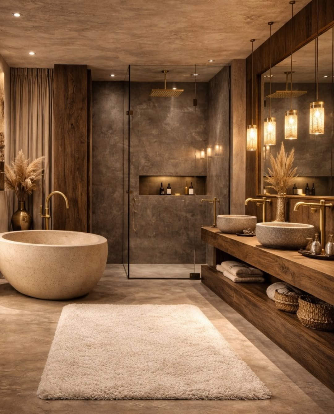 And paired with those natural textures and warm tones, it feels like a personal spa retreat. The kind of space where you lose track of time—in the best way possible.