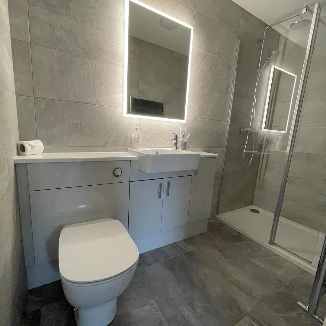 Backlit mirrors are having a moment—and this one shows exactly why. That soft halo glow creates a clean, modern look without needing extra fixtures crowding the space.