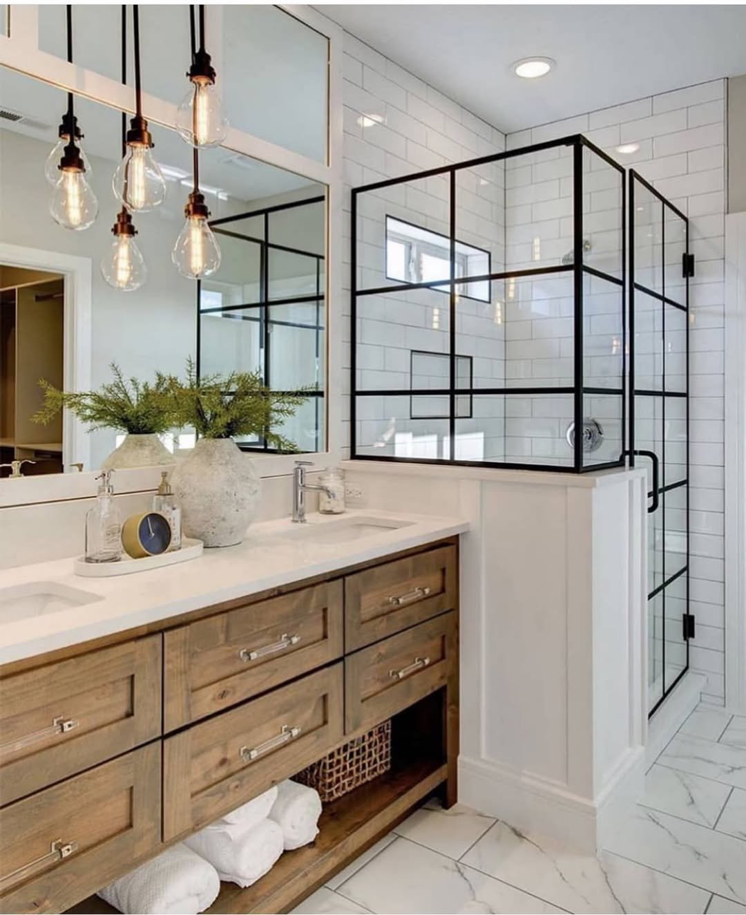Now this is how you mix charm with practicality. The overhead black fixtures bring a farmhouse edge, while still giving strong, focused light right where you need it.