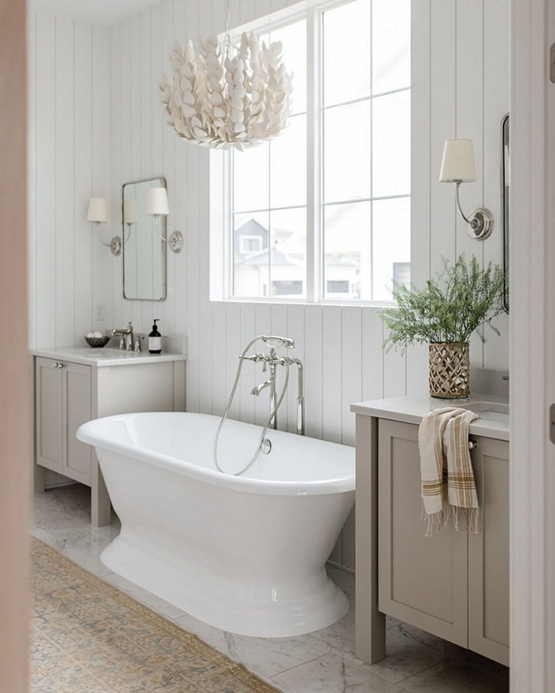 It’s calm, airy, and a little bit storybook. The kind of bathroom that feels tucked away from everything else.