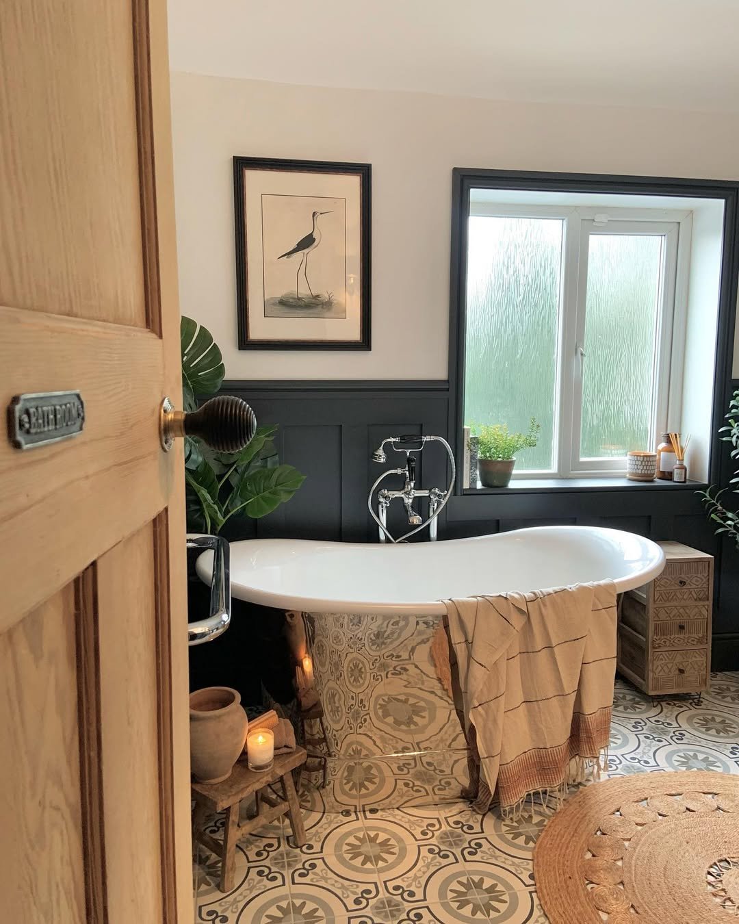 It’s cozy, a bit dramatic, and full of character. The kind of space that feels even better with low lighting and a long soak.