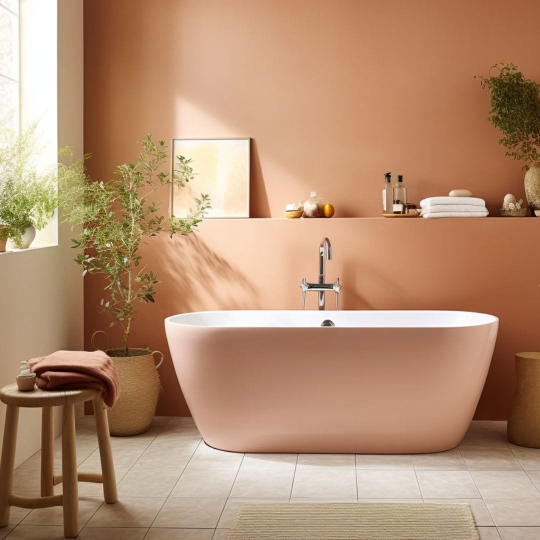 This warm peachy tone? It’s basically golden hour in bathroom form. The light hits it and suddenly everything feels softer, calmer, a little more intentional.