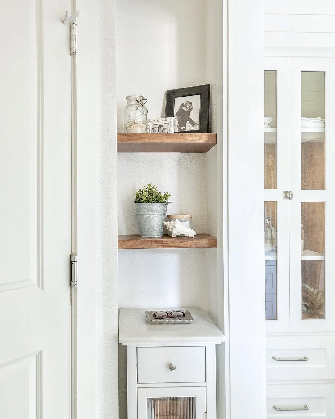 Sometimes less really is more—and this shelf proves it. The neutral tones, simple decor, and clean lines create such a calm, uncluttered look. It’s the kind of setup that instantly makes your brain go ahhh.
