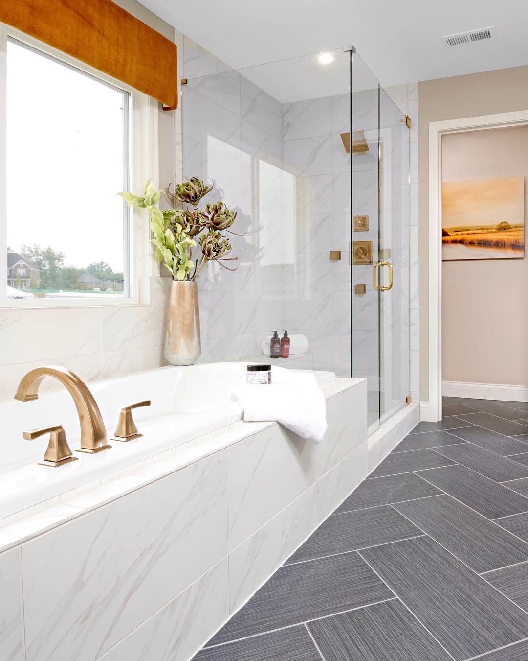 And those gold fixtures? They pop just enough against the soft tones to add warmth. It’s luxurious, but still inviting—not cold or intimidating.