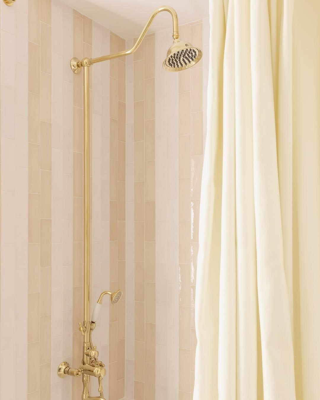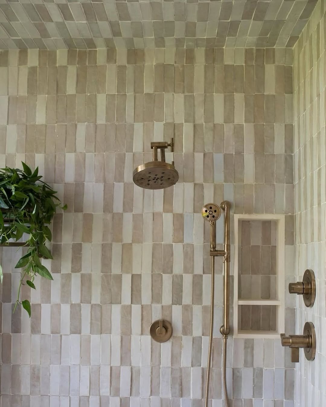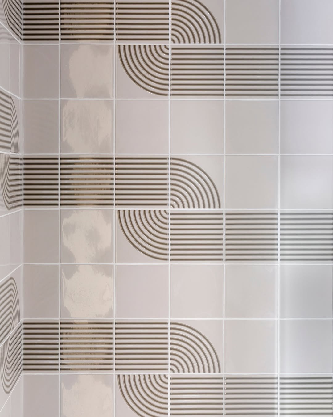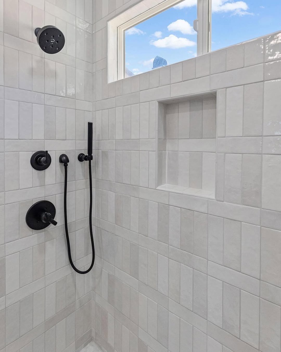Vertical tile layouts don’t get enough credit. These soft beige stripes subtly draw the eye upward, making the space feel taller without trying too hard.
