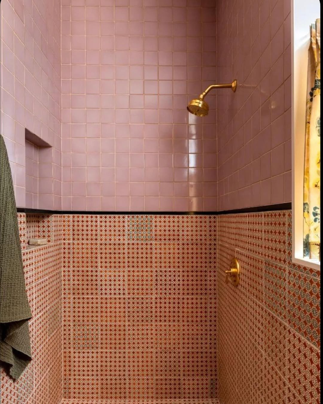 There’s something about pink tile that just softens everything. The small square grid keeps it structured, but the tonal variation adds that handmade, slightly imperfect charm.