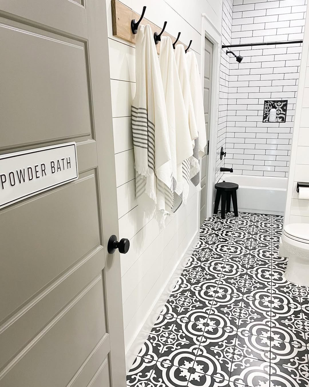 This one’s all about using what you already have. A towel rack on the back of the door turns an overlooked space into something super functional.