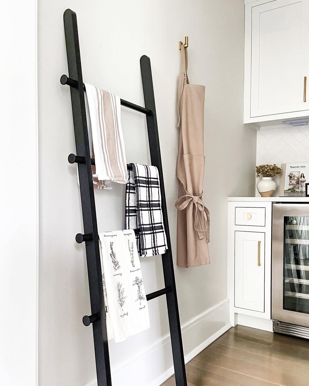 And that ladder-style rack keeps things neat without feeling rigid. It’s one of those setups that looks polished but still easy to maintain day-to-day.