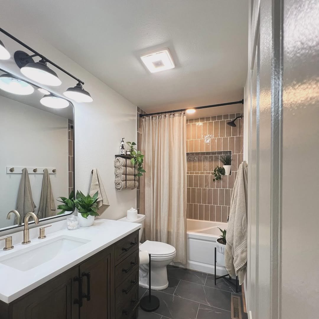 And then you notice the details—how the towels add texture against the tiles, how everything feels just… easy. Not staged, not overthought. Just a bathroom that works and looks good doing it.