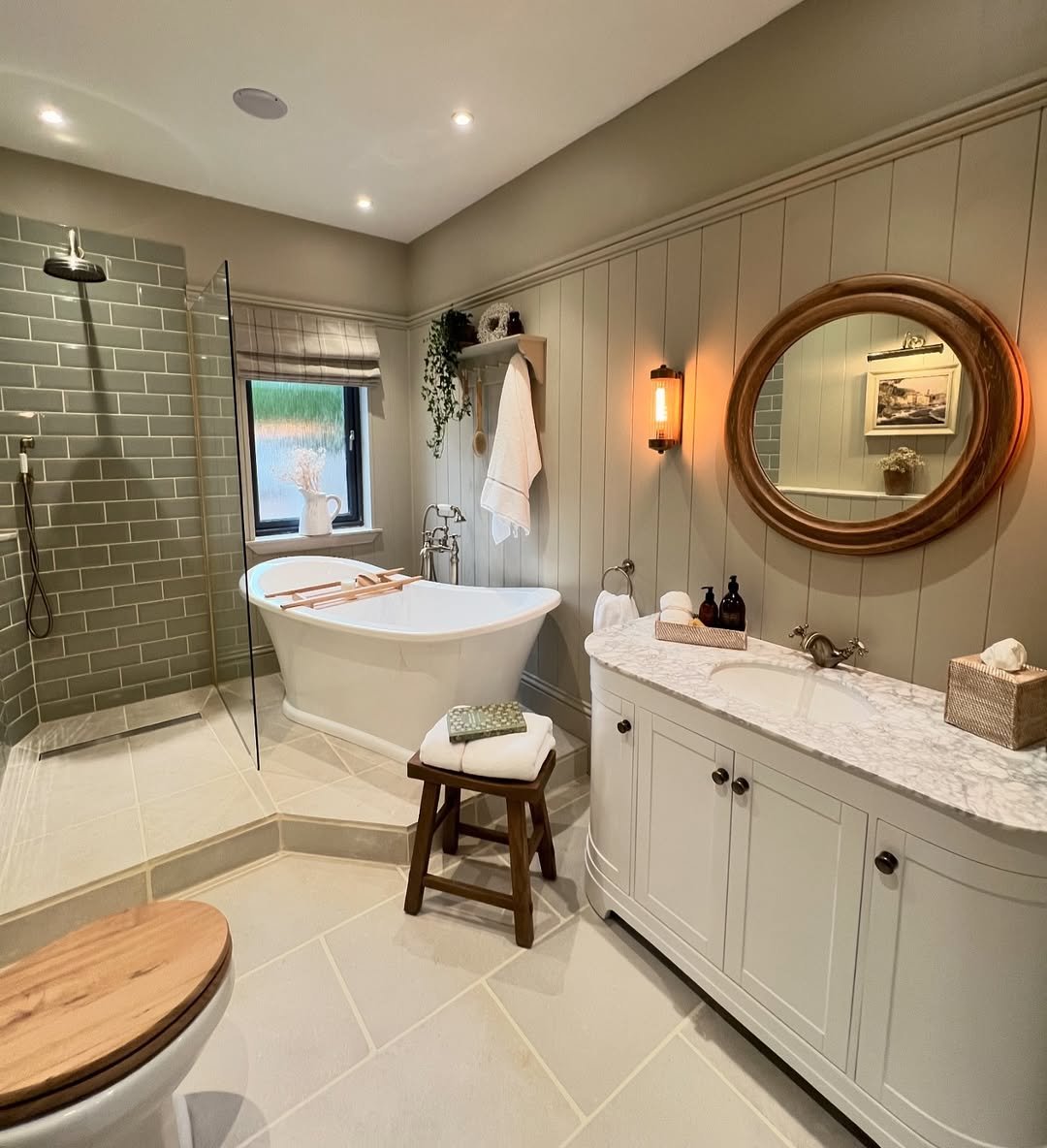 It feels grounded but elevated. Like a spa retreat that just happens to be your own bathroom.