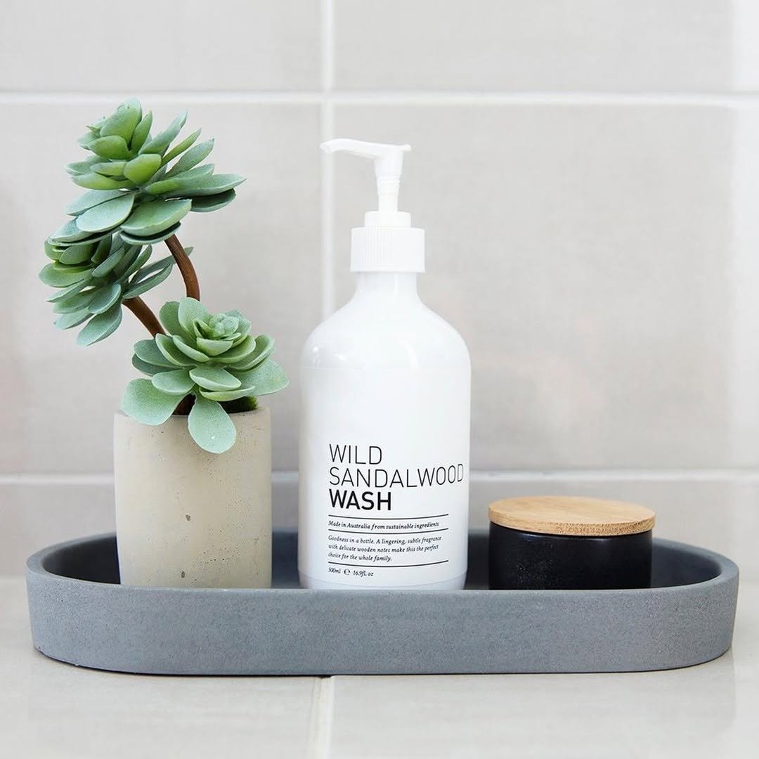 Now this is sleek. Dark bottles, a textured tray, and that clean-lined backdrop—it’s modern, a little moody, and very put together.
