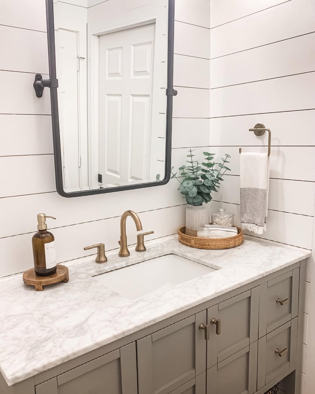 It’s still relaxed and coastal, but with a touch more elegance. Like your everyday bathroom… but on a really good day.