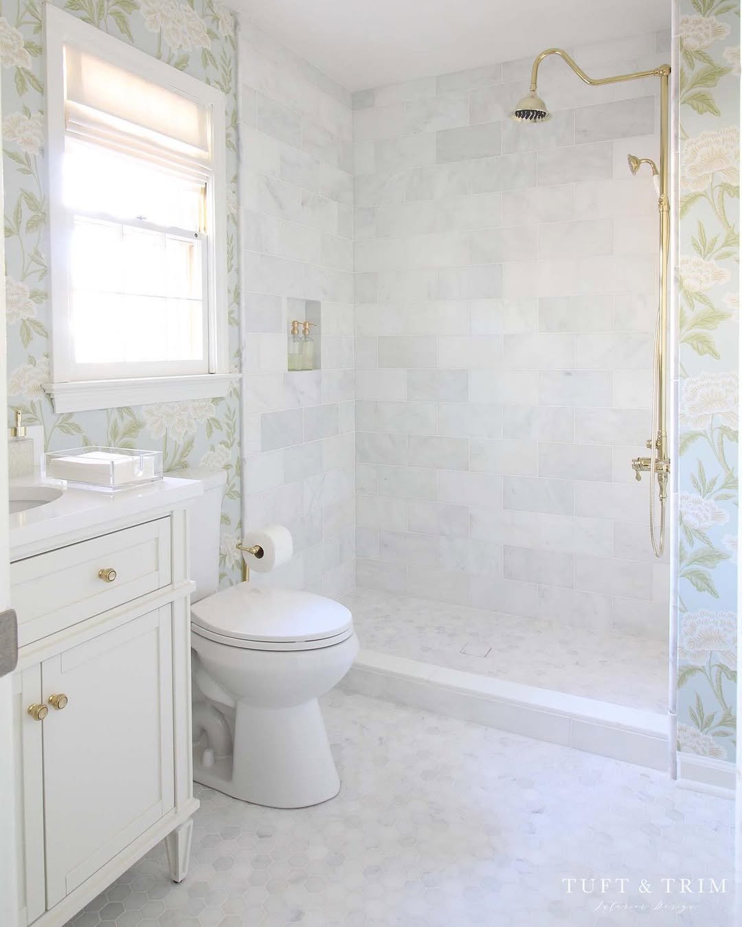 It’s bright, fresh, and effortlessly pretty. The kind of bathroom that feels clean even before you’ve cleaned it.