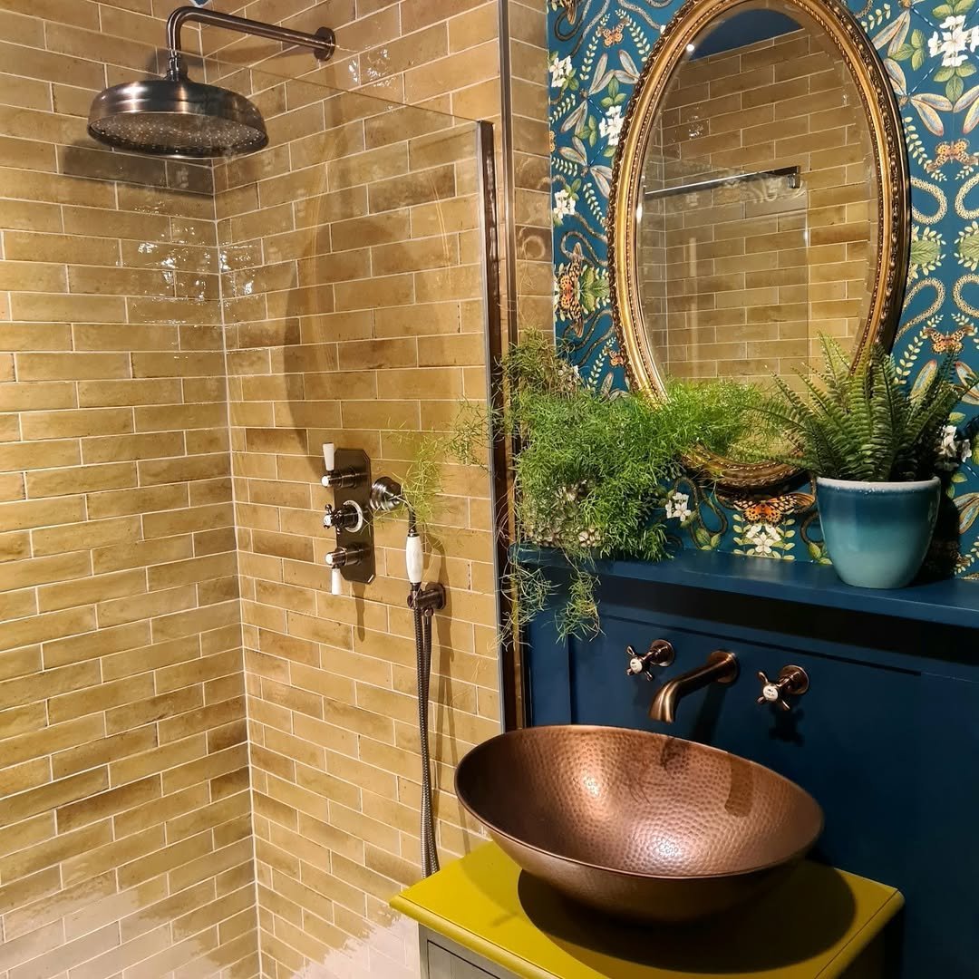 Paired with those rich colors and textures, it turns the bathroom into more than just functional—it actually feels styled and personal.