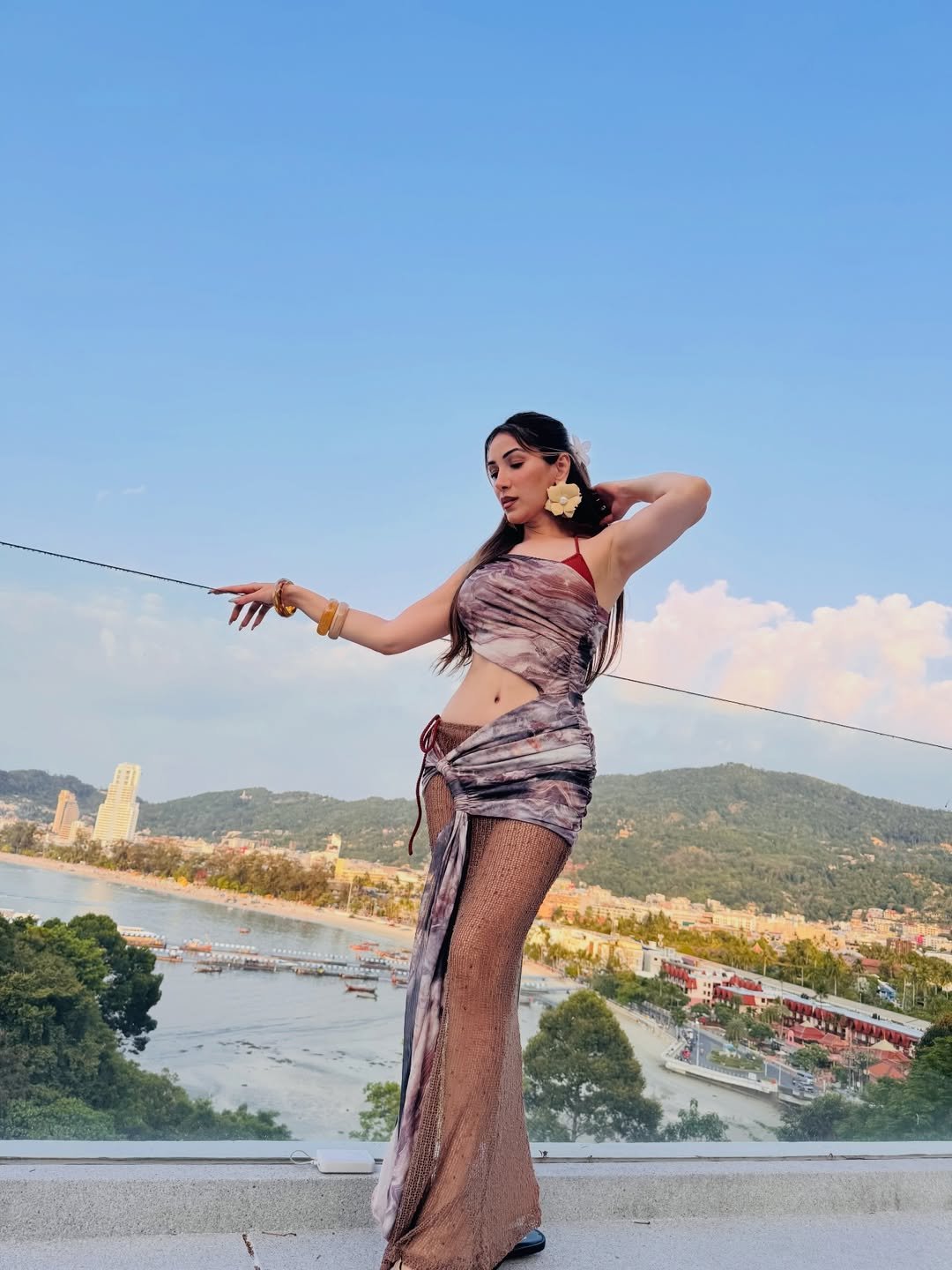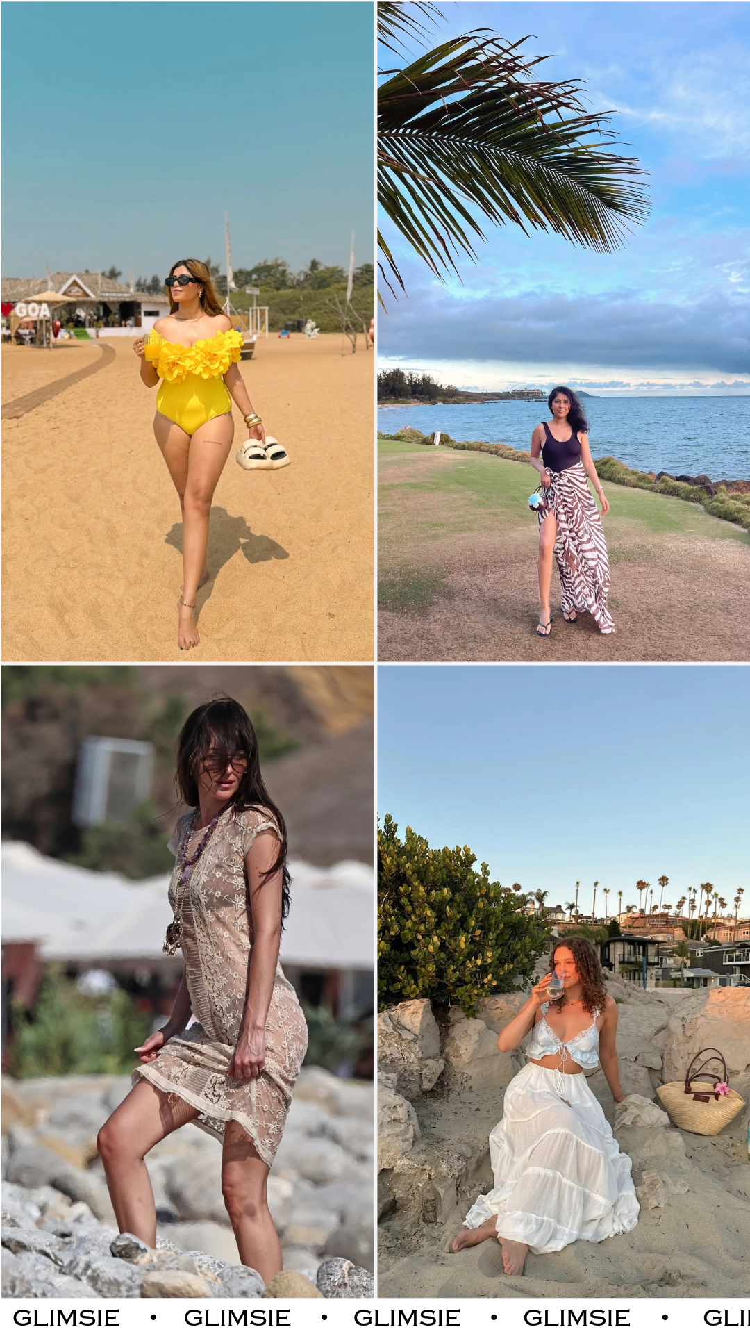 This is the kind of outfit that doesn’t try to be practical, and that’s the charm. It’s meant for twirling in the tide and letting the ocean do the styling.
