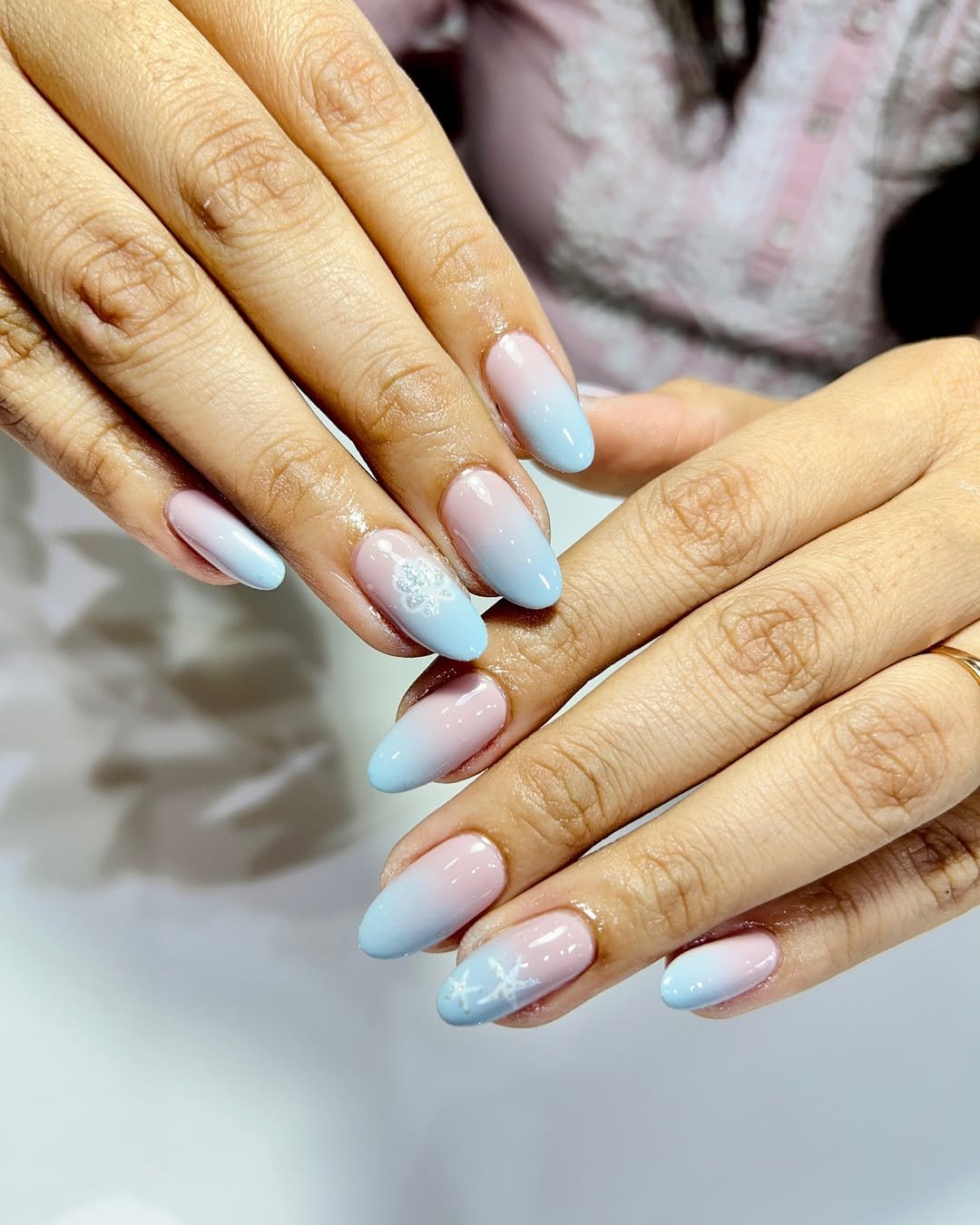 These nails are giving “walked straight from the ceremony into the ocean for photos.” The soft baby-blue tones paired with shell-inspired art create such a dreamy, airy look. It’s sweet, serene, and totally beach-wedding approved.