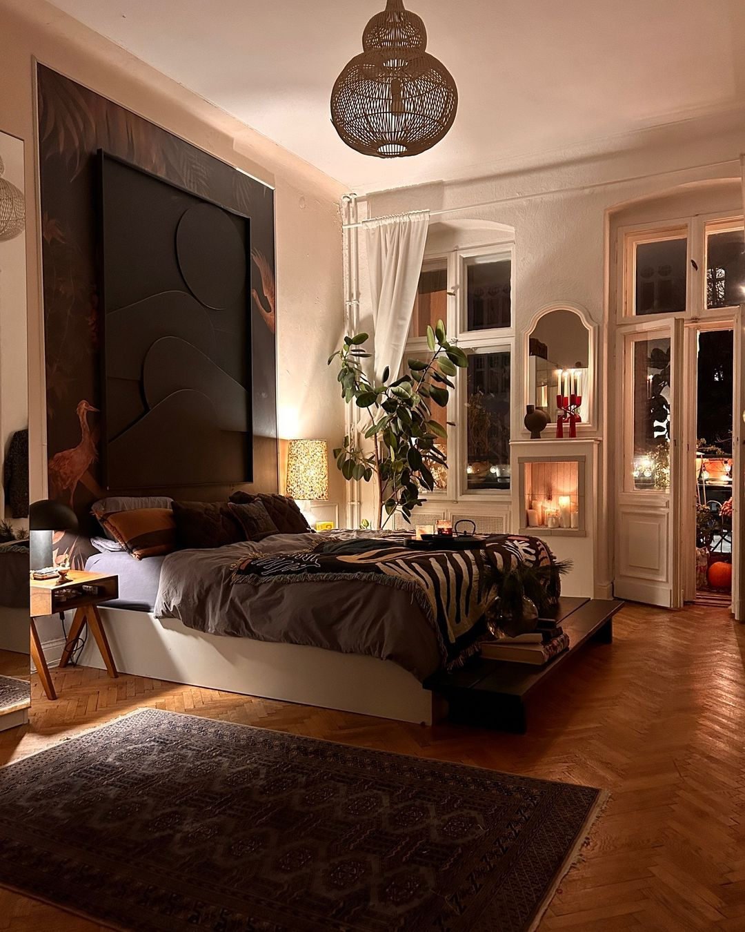 It’s intimate and relaxed, with just enough contrast to keep it interesting. Think low lighting, layered throws, and a mix of materials that feel soft to the touch.