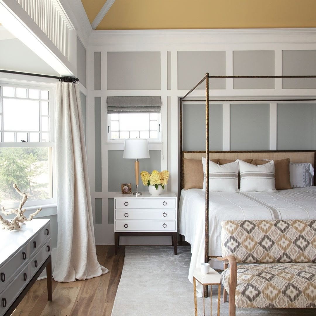 It’s the kind of room that ages well, never chasing trends. The structure of the wall paneling adds interest without needing bold color, proving that sometimes the quietest palettes feel the most elevated.
