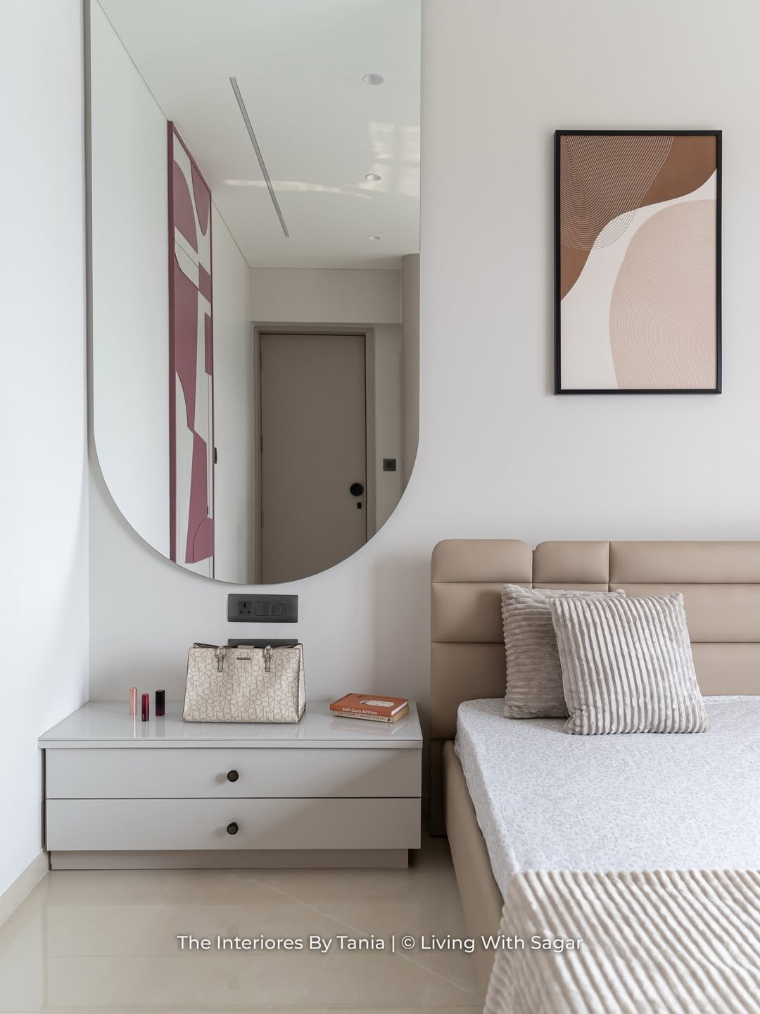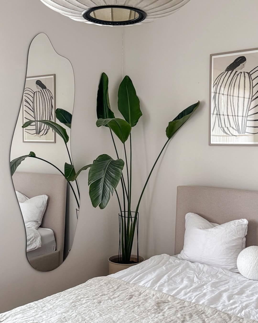 This space leans into softness in such a beautiful way. The mirror reflects gentle textures and light, creating a calm, almost cocoon-like atmosphere.