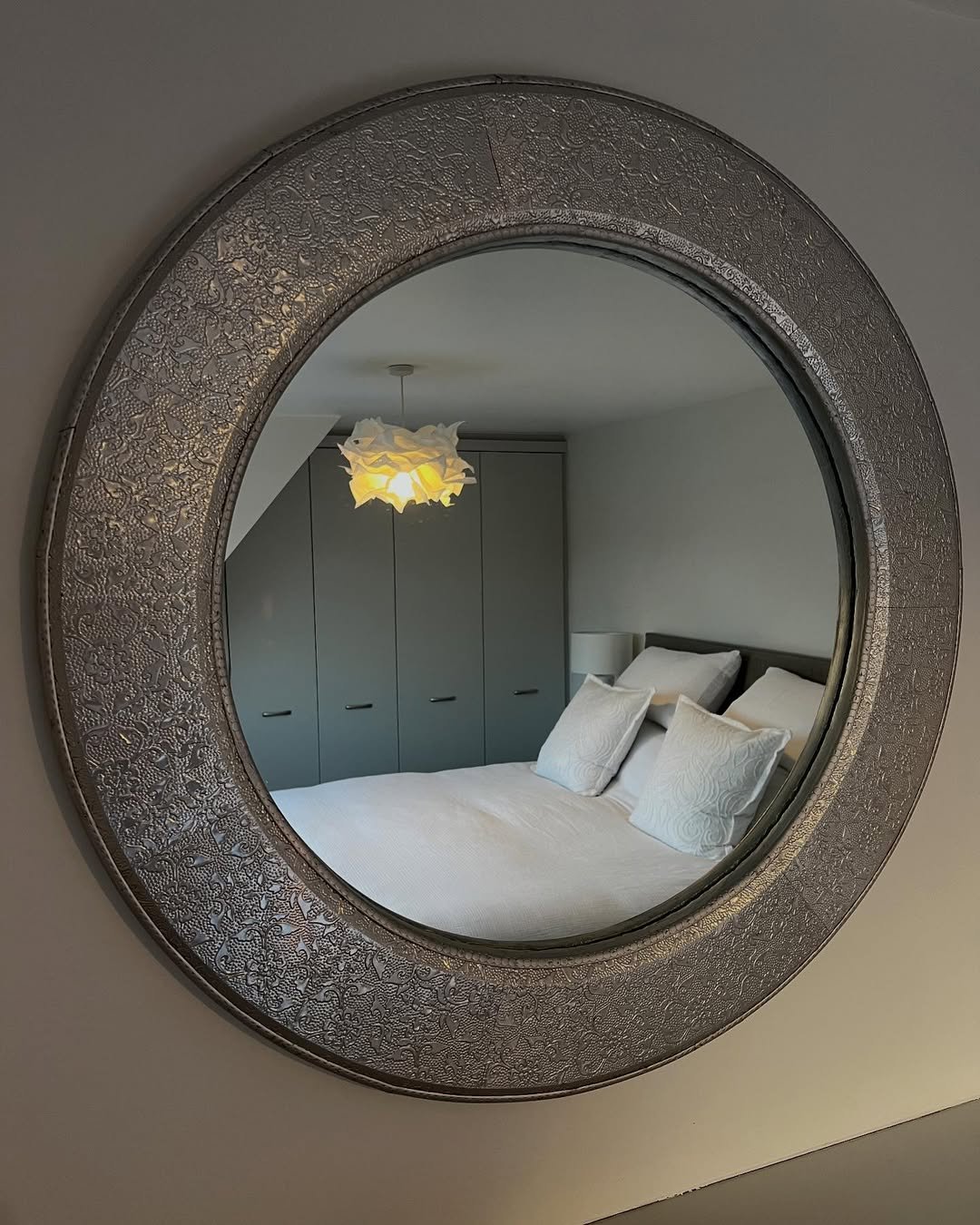 It reflects just enough of the bedroom to feel cozy and complete. Paired with soft bedding and muted tones, it brings in a sense of quiet character, the kind that doesn’t try too hard but still feels layered and thoughtful.