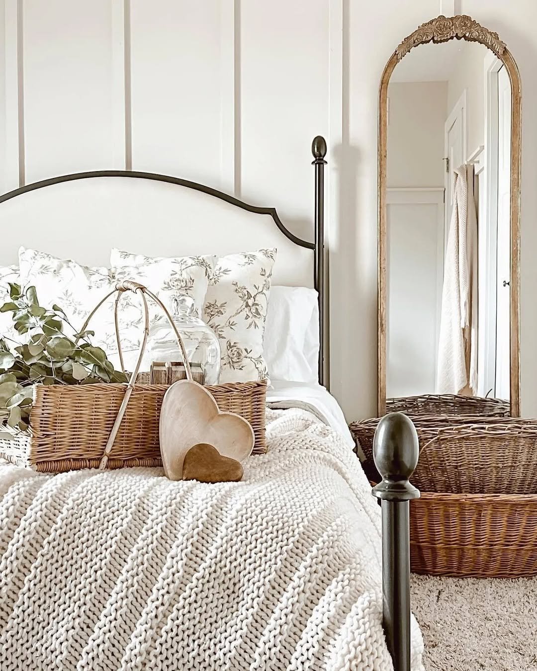 It feels collected over time, not styled in a rush. Mixing vintage mirrors with cozy layers creates a space that feels warm and personal. It’s less about perfection and more about feeling at home.