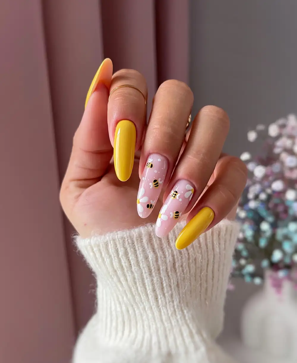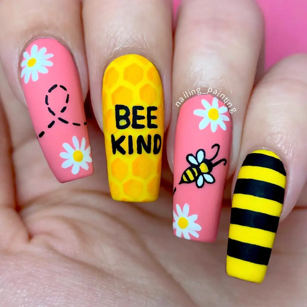 In this list, you’ll find inspiration ranging from subtle, nature-inspired designs to bold, cartoon-cute looks that celebrate all things bees and blooms. Get ready to explore manicure ideas that feel fresh, fun, and perfect for brightening your nail game this season.