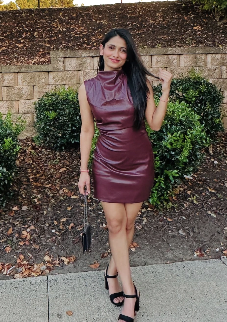This deep wine dress is perfect for birthdays that lean classy and intimate. The rich color brings warmth, while the leather texture adds a subtle edge — making it a standout look without being loud.