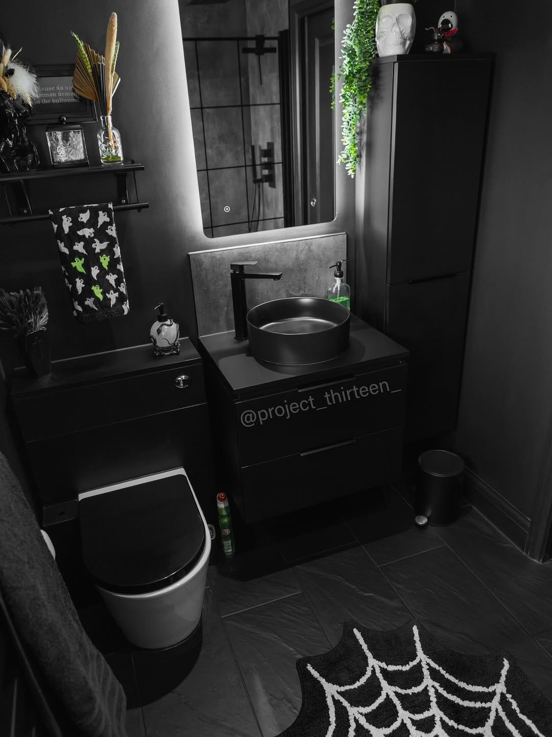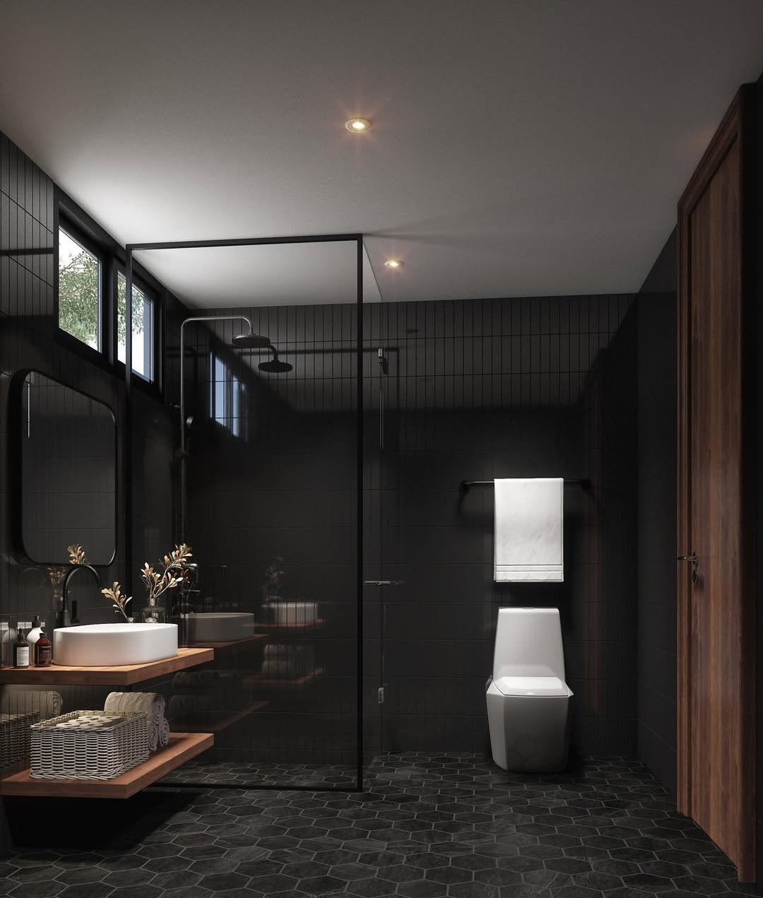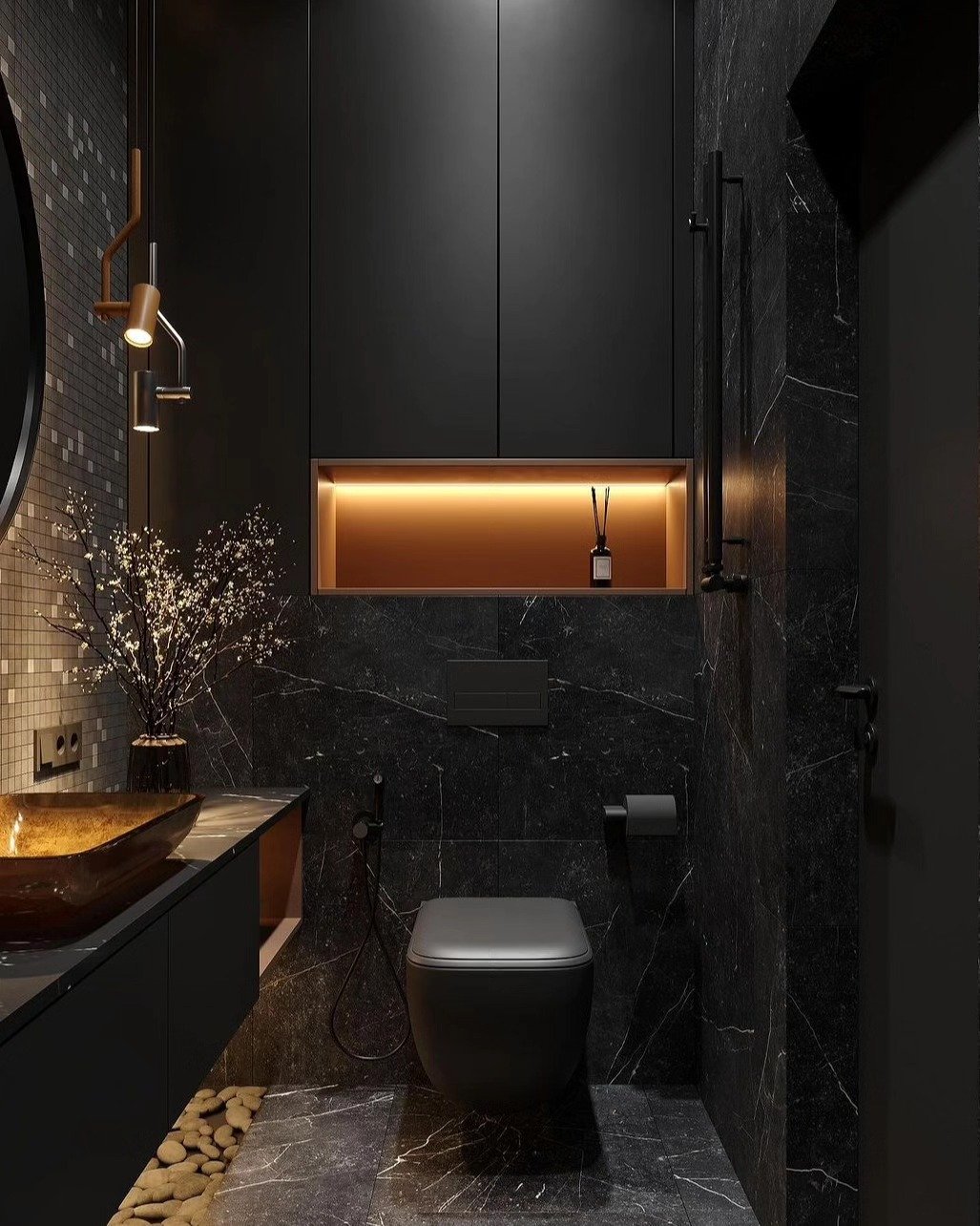 This one doesn’t hold back. Walls, fixtures, details—everything commits to the black theme, and it pays off big time.