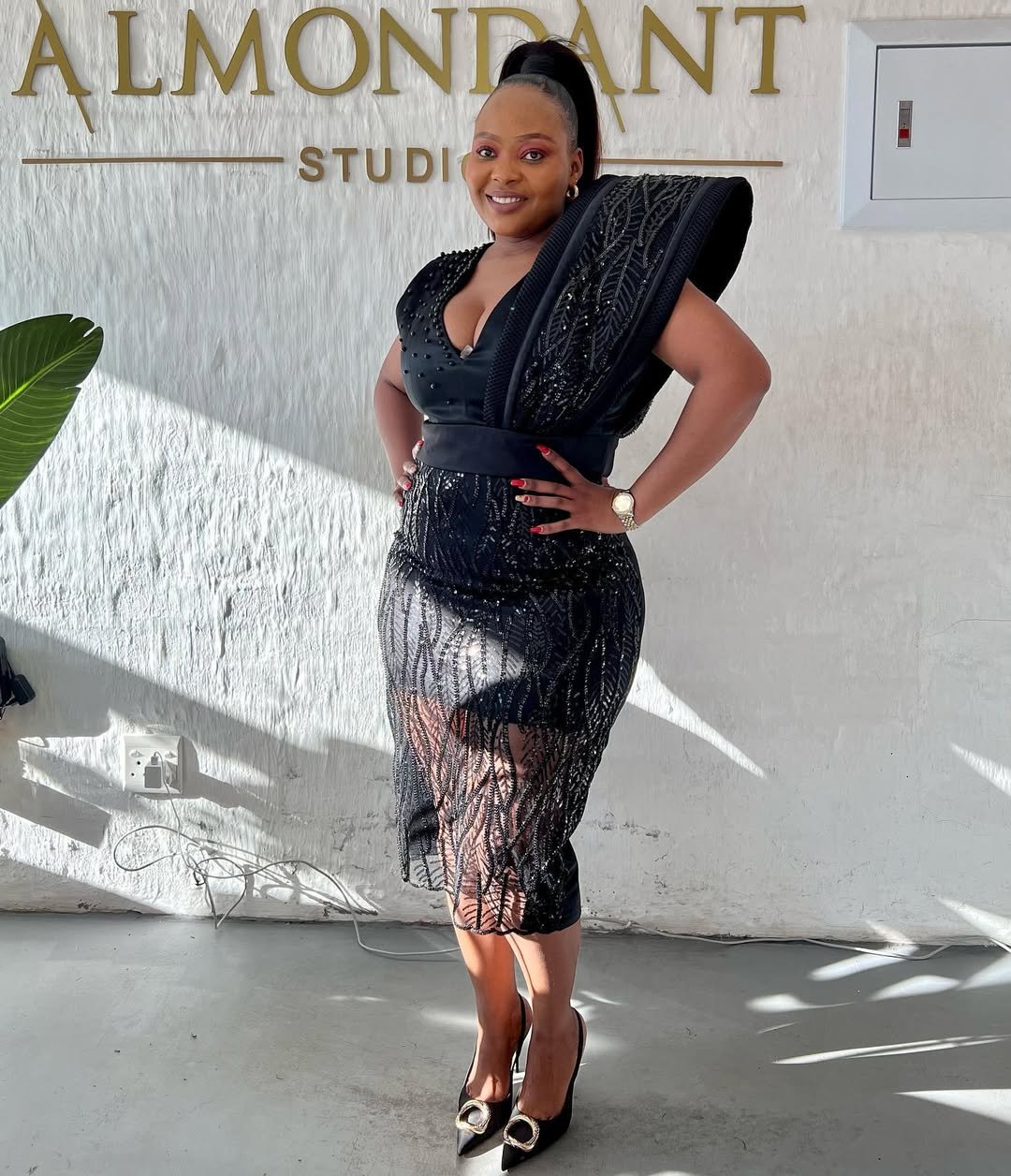 @deniseallams knows the power of a curve-hugging silhouette, and this sleek mermaid-style black dress proves it. The mesh cutouts give it a bold, contemporary twist while the golden heels add a flash of drama.