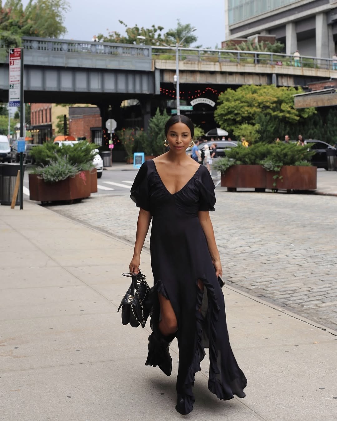 The second @waityouneedthis moment brings drama to the city streets. With puff sleeves, deep neckline, and flowing ruffles, this dress moves like a breeze yet looks completely high-fashion. It’s flirty, powerful, and a little bit rebellious.