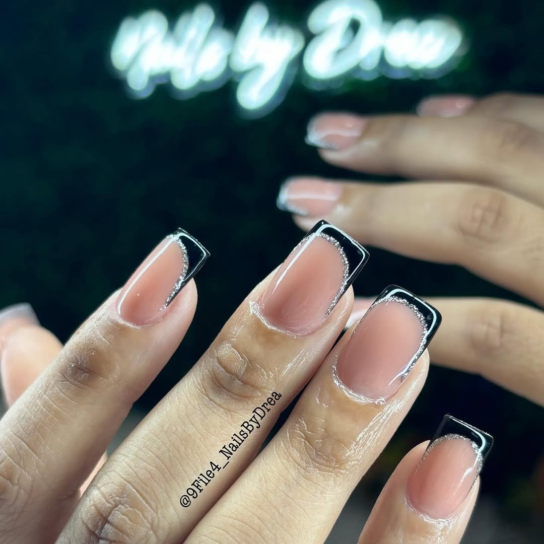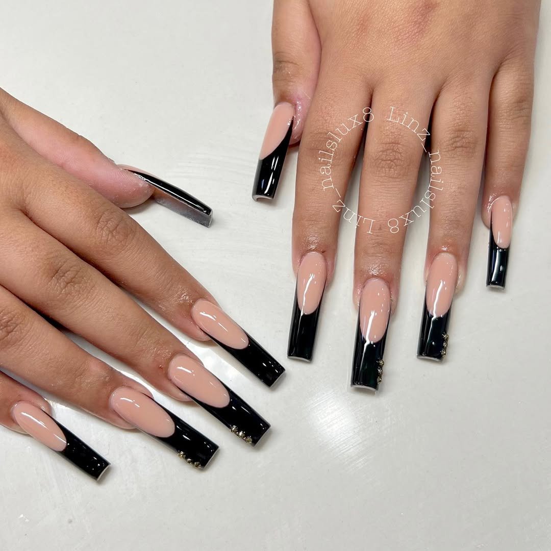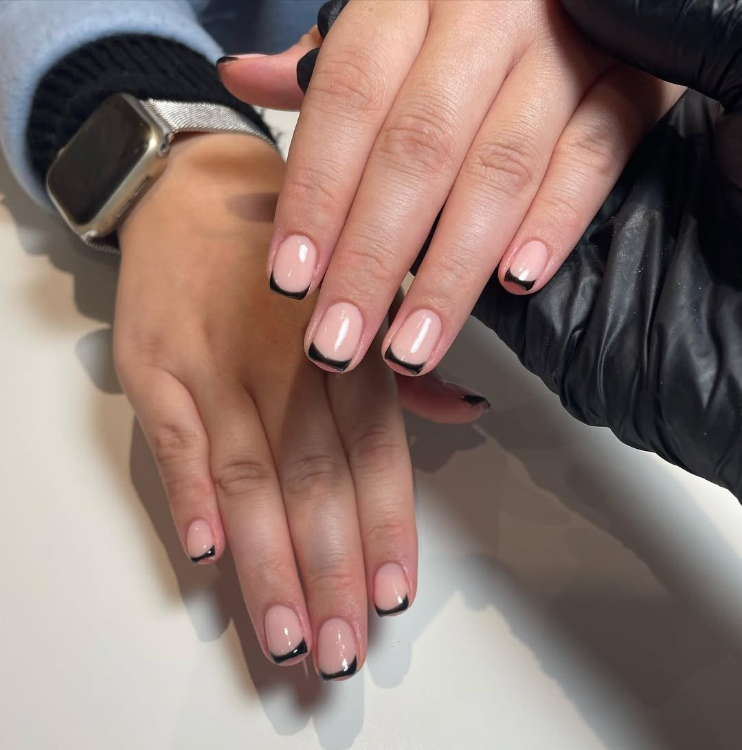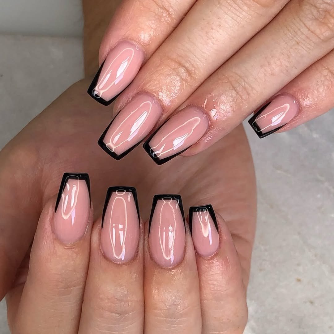 This is the kind of black tip that never goes out of style. A soft blush base paired with a clean, squared black edge feels crisp and intentional.
