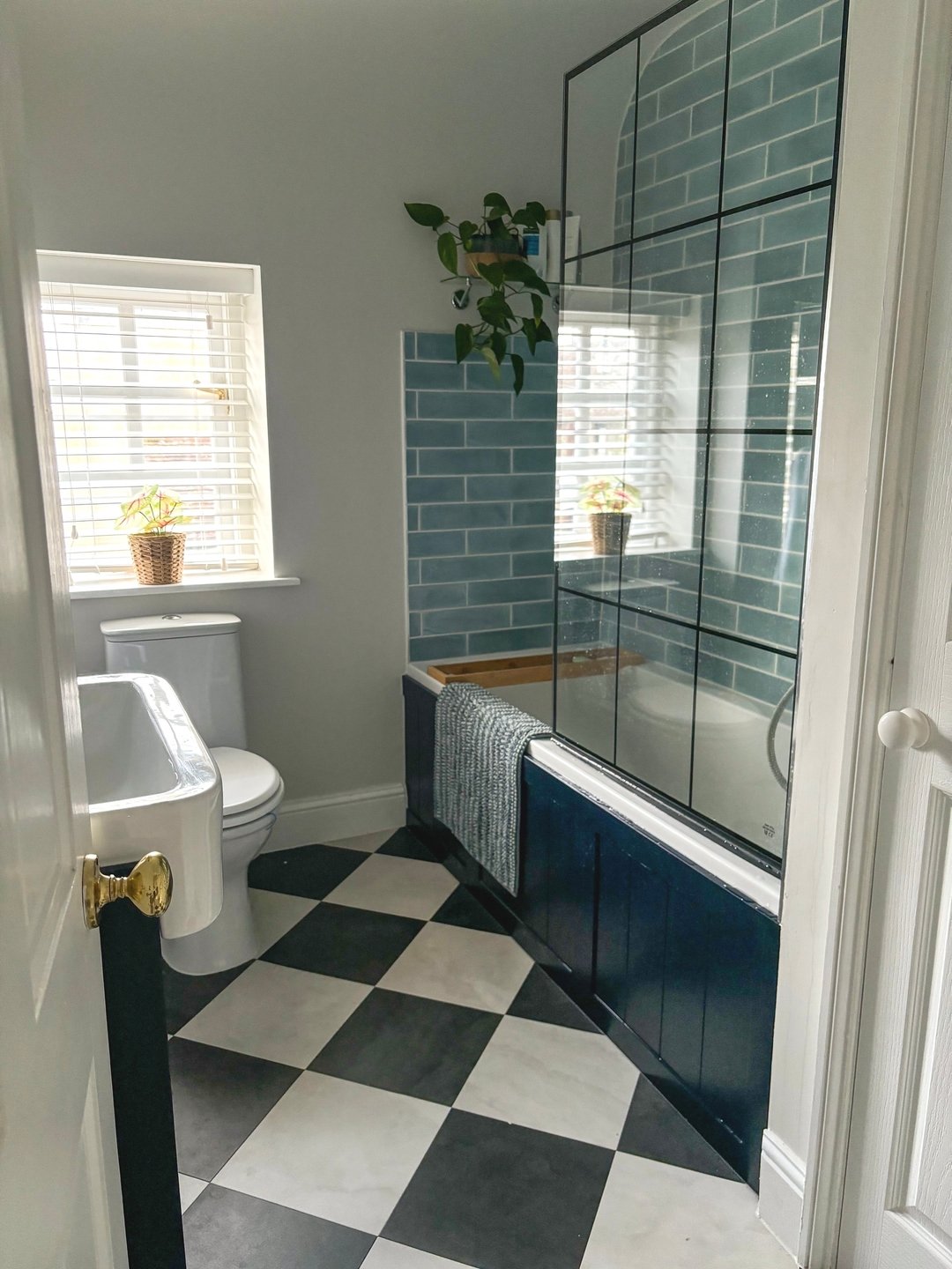 There’s something so satisfying about this combo. The deep blue shower tiles against the crisp white walls and trim—it’s clean, sharp, and super classic.