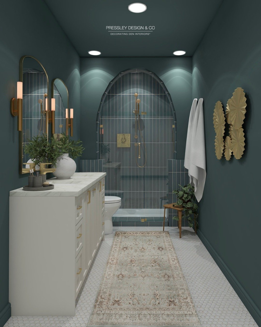 Now this is a full-on moment. The rich teal walls paired with gold accents instantly elevate the space into something that feels almost boutique-hotel level.