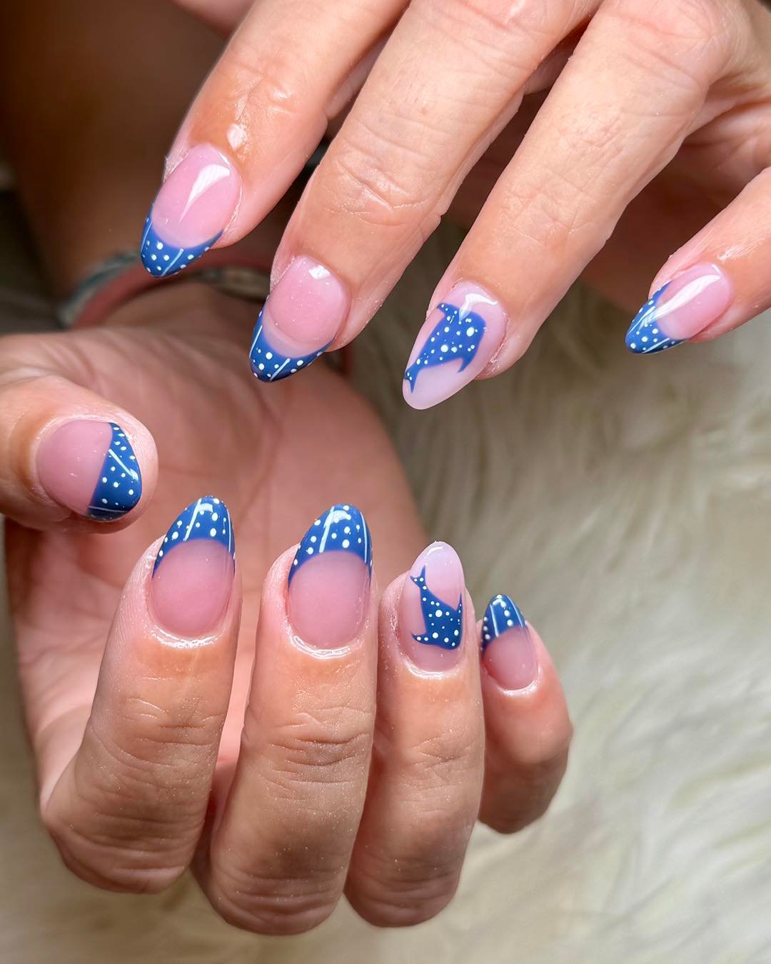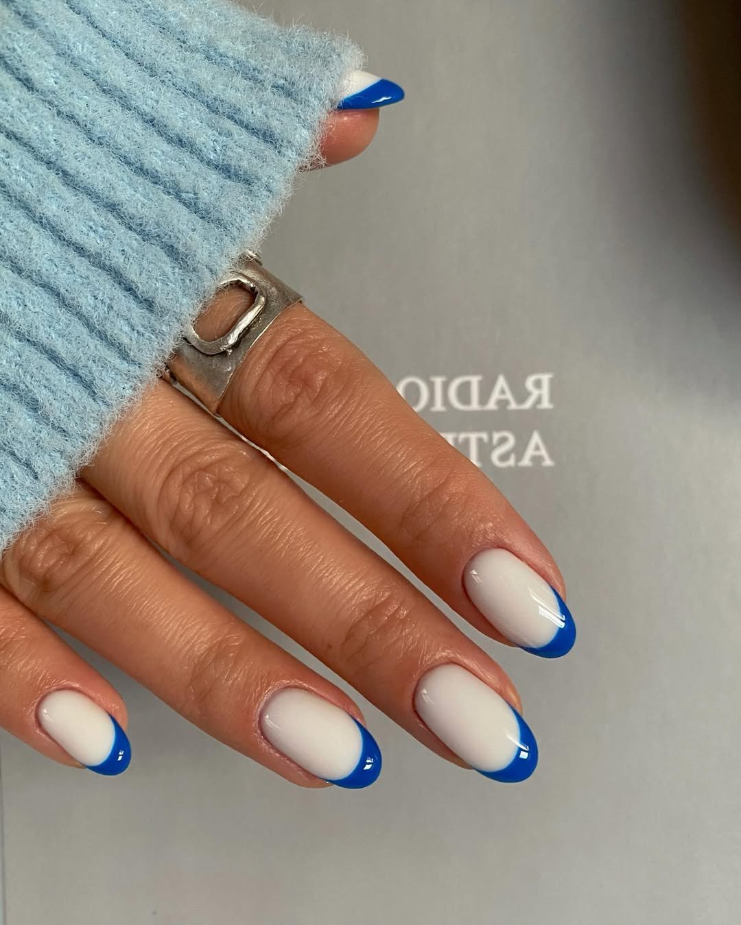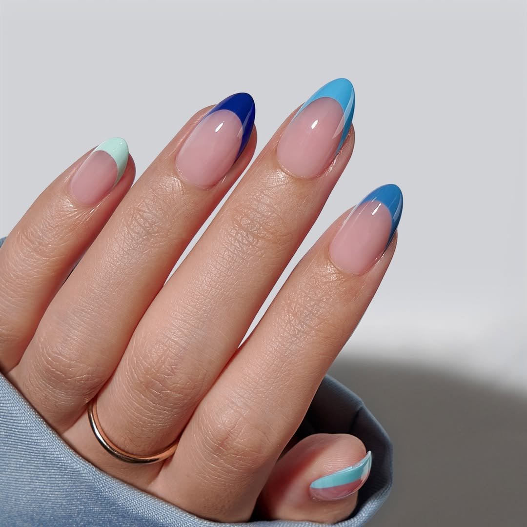 The transition between the two blues is seamless, giving a modern twist to the French manicure. And on almond-shaped nails, it feels both playful and chic.