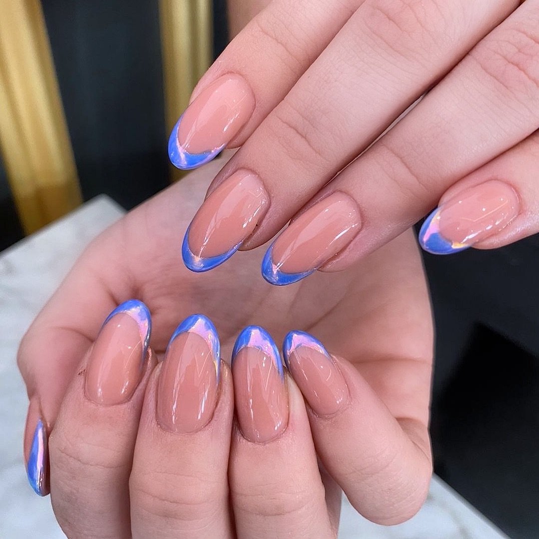 This is your French tip, but make it holographic. The way the blue edges shift in the light, catching hints of purple and pink, is mesmerizing. It’s giving mermaid chic in the most sophisticated way.